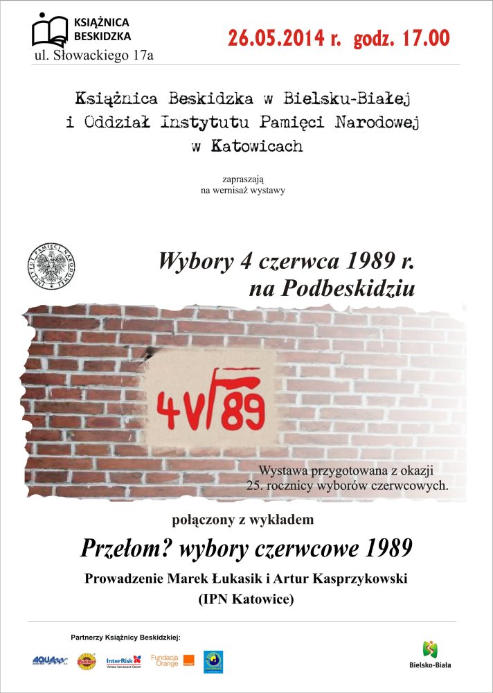 Spotkanie w Książnicy Beskidzkiej połączone zostało z otwarciem wystawy „Wybory 4 czerwca 1989 r. na Podbeskidziu", na której zaprezentowane zostały plakaty, ulotki, fotografie i inne dokumenty z czasów wyborów 1989 roku, pochodzące ze zbiorów Artura Kasprzykowskiego.