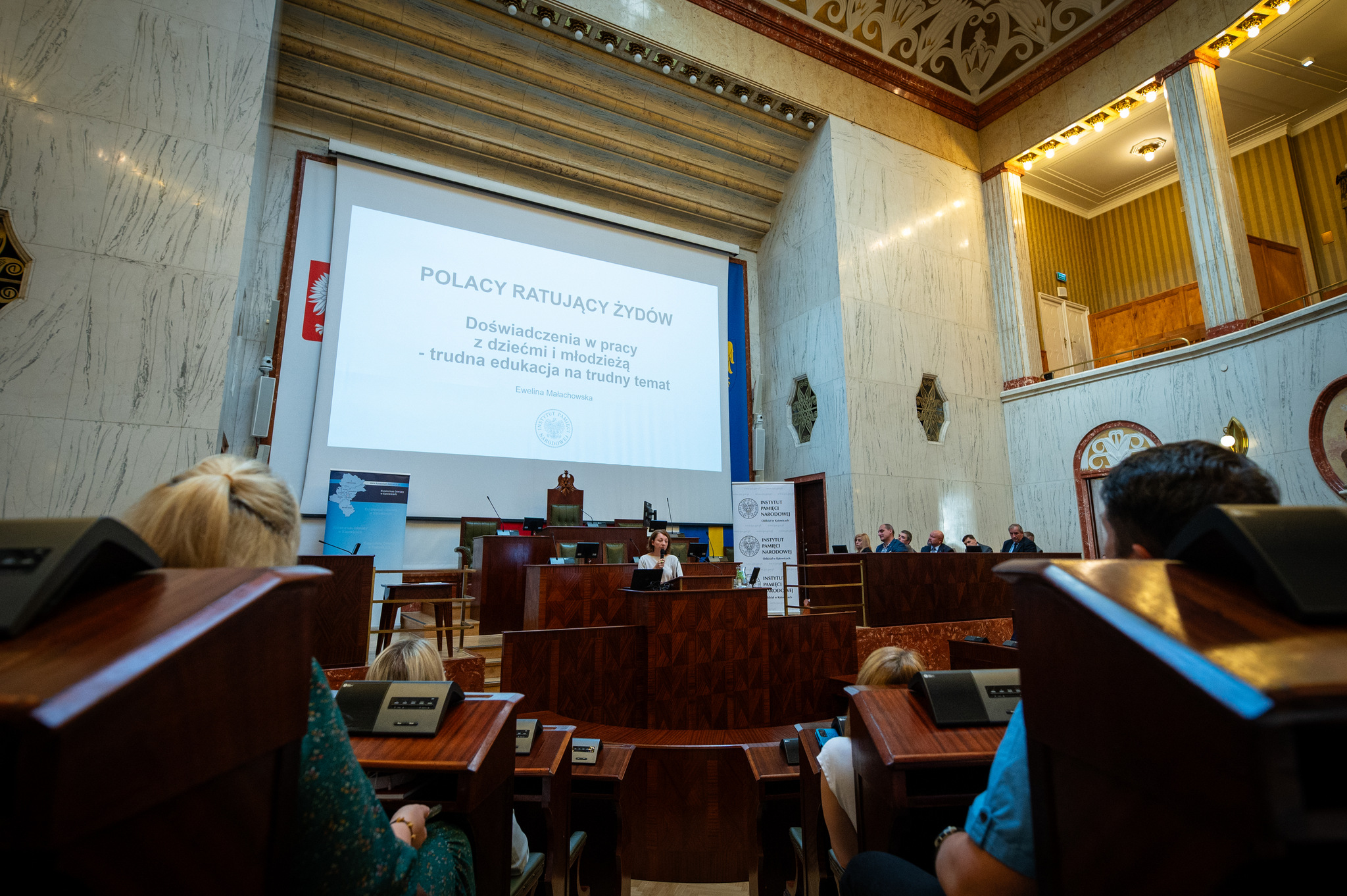 Kolejne punkty programu przyniosły cenne prelekcje, które poświęcone były różnym aspektom polskiej pomocy dla społeczności żydowskiej w czasie niemieckiej okupacji. Dr Aleksandra Namysło z Oddziału IPN w Katowicach opowiedziała o mieszkańcach Górnego Śląska i Zagłębia Dąbrowskiego, którzy udzielali pomocy ludności żydowskiej w trudnych czasach wojny. Następnie Tomasz Gonet, również z Oddziału IPN w Katowicach, przybliżył historie pomocy udzielanej Żydom na Kresach południowo-wschodnich II Rzeczypospolitej w czasie okupacji niemieckiej.