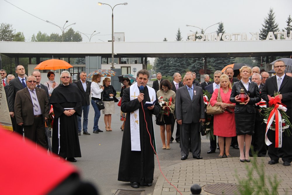 - 11.30 – złożenie kwiatów pod Krzyżem za bramą główną ArcelorMittal Poland SA (dawna Huta Katowice).