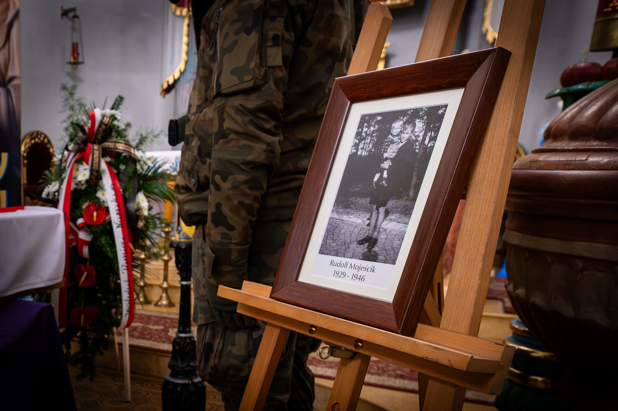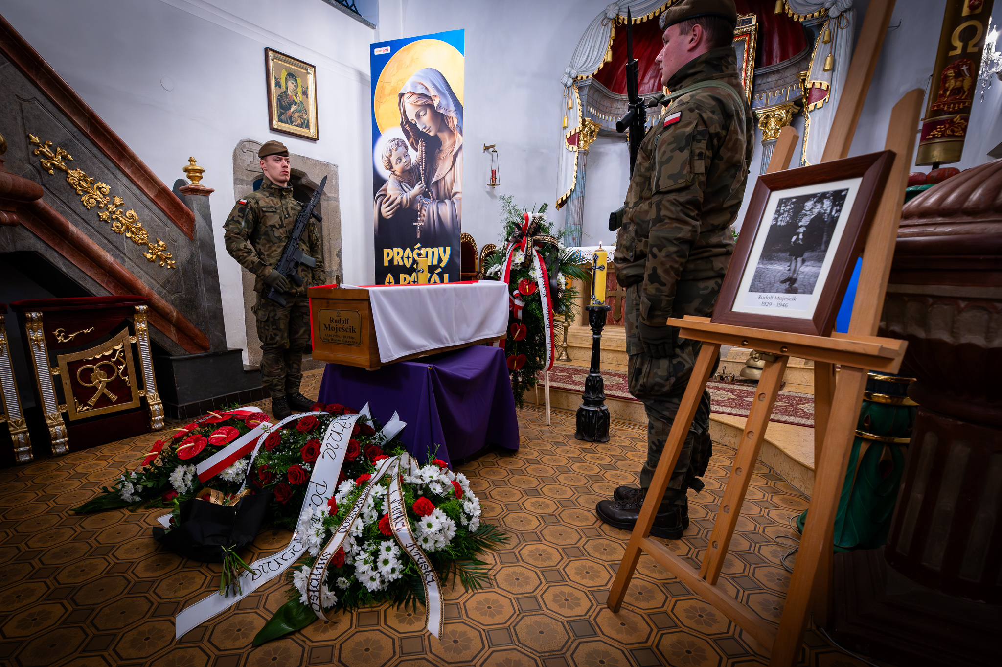 „[…] 77 lat temu w swoją podróż gdzieś w nieznaną dal udał się młody żołnierz oddziału Narodowych Sił Zbrojnych kapitana Henryka Flamego pseudonim „Bartek”, udał się Rudolf Mojeścik […] miał za sobą 17 lat i 5 miesięcy swojego życia i był najmłodszy wśród tych blisko 100 żołnierzy oddziału NSZ „Bartka” […]. Wtedy wszyscy oni, także Rudolf, wierzyli w to, że wyjeżdżają na Zachód. Wyjeżdżają na Zachód, gdzie będą u boku generała Andersa kontynuowali walkę jak Wojsko Polskie, z systemem komunistycznym i żaden z nich nie wiedział, że wszyscy jadą na miejsce likwidacji, na straszliwe miejsce śmierci […]. Rudolfa Mojeścika znaleźliśmy po wielu latach […]. Kiedy przyjechaliśmy na polanę śmierci, przez kolejne dni, tygodnie ziemia zaczęła ujawniać swoją mroczną, straszliwą tajemnicę sprzed lat […] orzełek w koronie, potem był to krzyż harcerski, potem był to ryngraf z Matką Boską Częstochowską […] a potem już były szczątki, doły śmierci ze szczątkami naszych bohaterów […]. Nie powrócili wtedy. Oni powracają teraz. W wolnej Polsce, bo wolna Polska o nich się upomniała. Wraca po nich w różne miejsca: miejsca kaźni, miejsca represji, miejsca śmierci. Odnajduje, identyfikuje, wkłada do trumny, żegna modlitwą i honorami, które są naszym bohaterom przynależne. Dzisiaj w Górkach Wielkich do domu powraca Rudolf Mojeścik […] spoczywaj w pokoju młody żołnierzu!”
