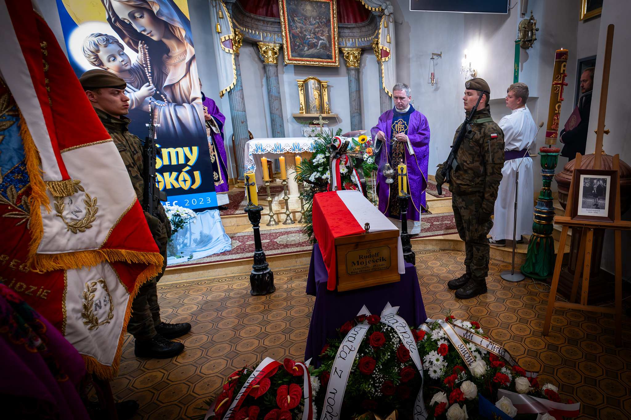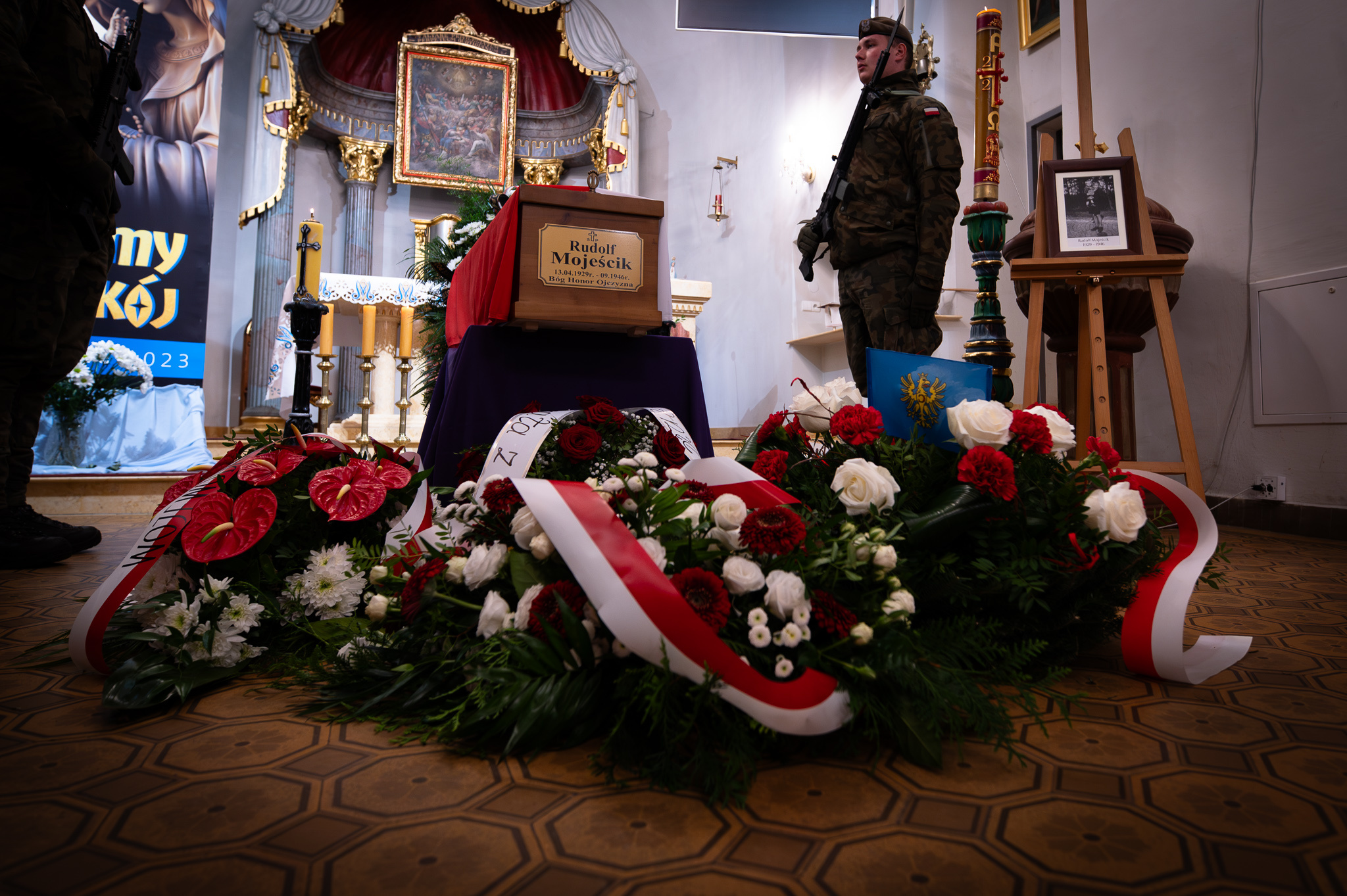 Pogrzeb śp. Rudolfa Mojeścika, żołnierza Narodowych Sił Zbrojnych – Górki Wielkie, 17 października 2023. Fot.: IPN K. Łojko