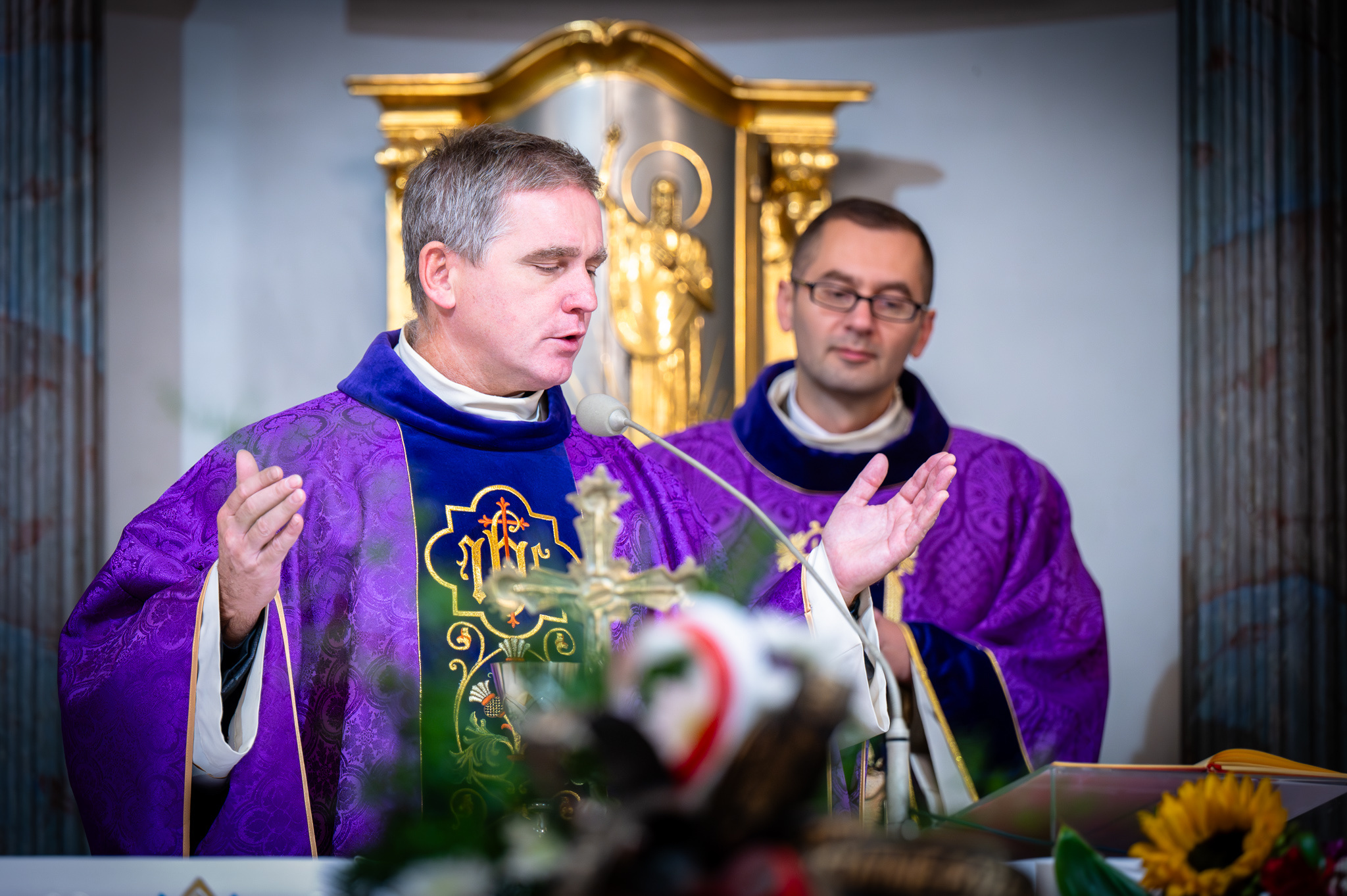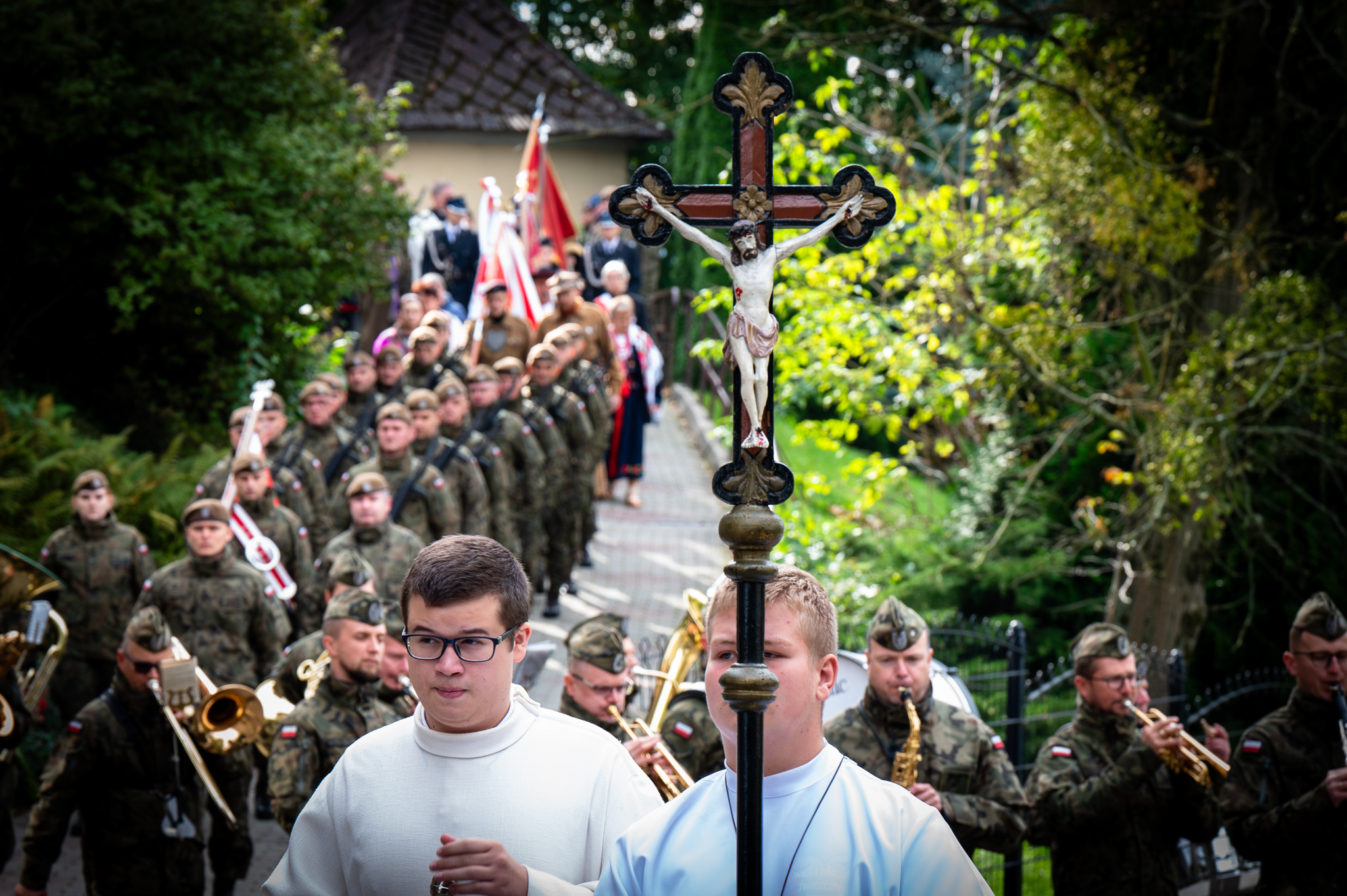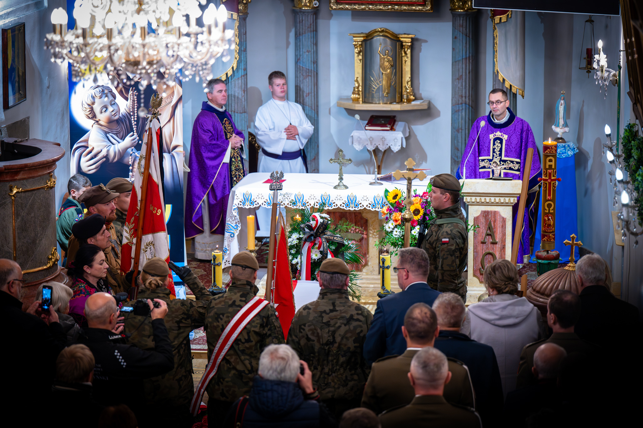 Mszę celebrowali ks. Roman Berke, proboszcz parafii pw. Wszystkich Świętych w Górkach Wielkich oraz ks. kpt. Krzysztof Włosowicz, proboszcz bielskiej parafii wojskowej pod wezwaniem Bożego Miłosierdzia.