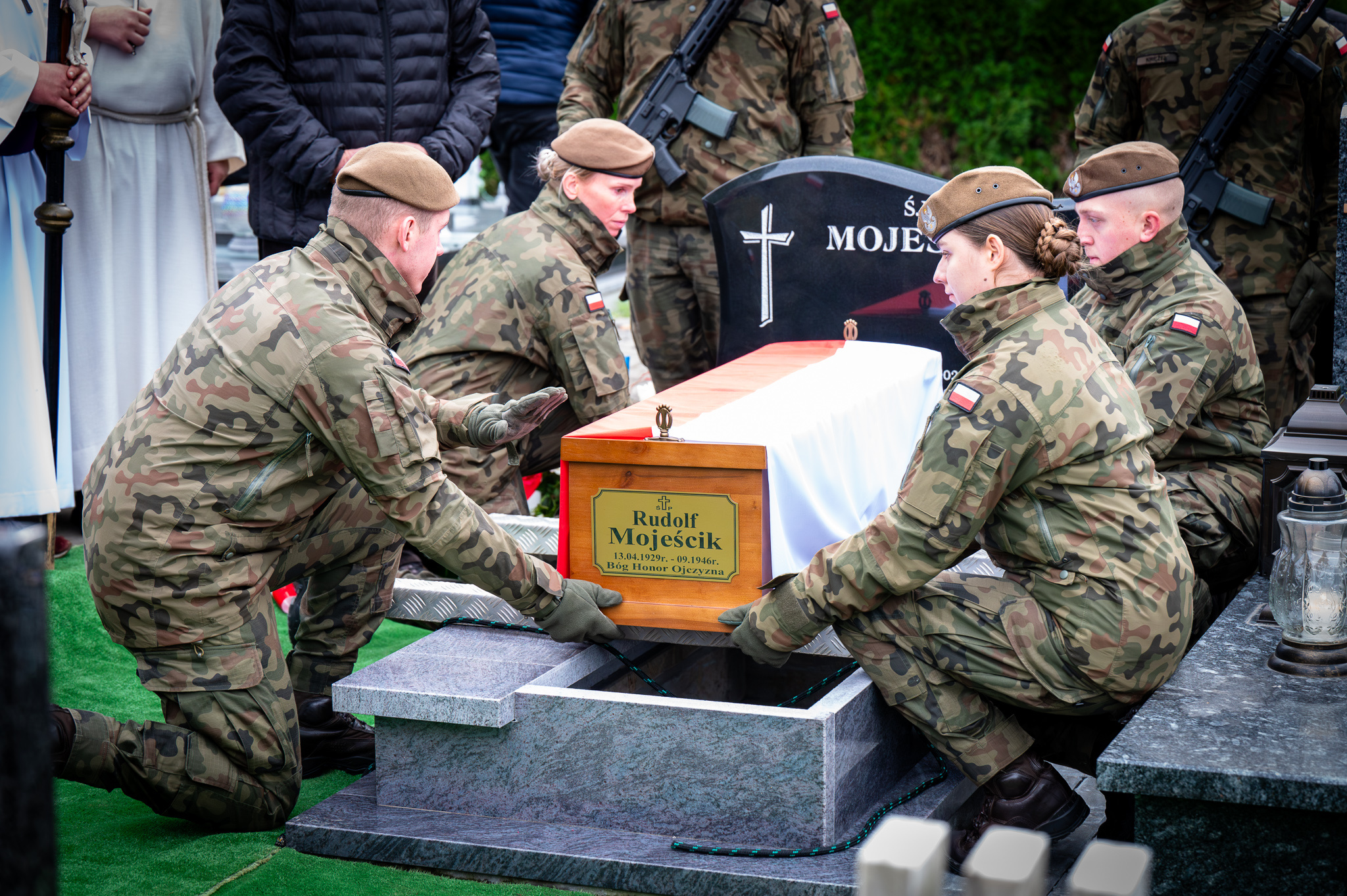 By wspólnie pożegnać zmarłego tłumnie zebrali się: rodzeństwo i rodzina śp. Rudolfa Mojeścika oraz Janina Żagań, Wicestarosta Cieszyński, Stanisław Kubicius, Przewodniczący Rady Powiatu Cieszyńskiego, Jerzy Pilch, Wójt Gminy Brenna, Krzysztof Wieczerzak, Zastępca Wójta Gminy Jasienica, Grażyna Gaszek, Sołtys sołectwa Świętoszówka. 13 ŚBOT reprezentował major Paweł Wach. Stawiły się organizacje kombatanckie i rekonstruktorskie, harcerze oraz licznie zgromadzeni mieszkańcy Górek Wielkich.