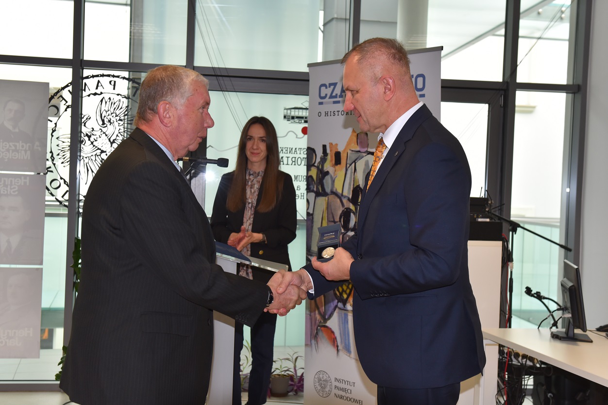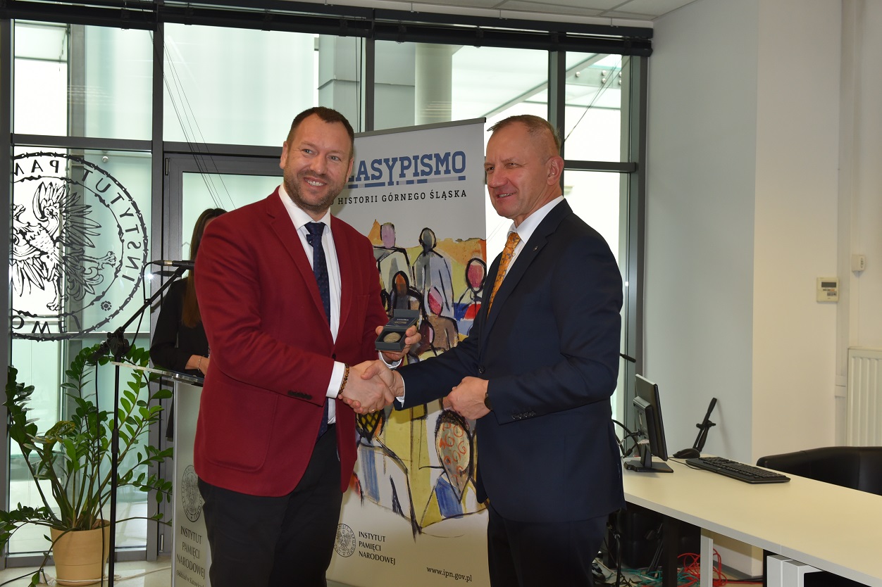 Na zakończenie uroczystości Mariusz Siembiga, zastępca dyrektora Oddziału NBP w Katowicach wręczył zaproszonym gościom prezentowaną we wtorek monetę okolicznościową. Uhonorowano:
