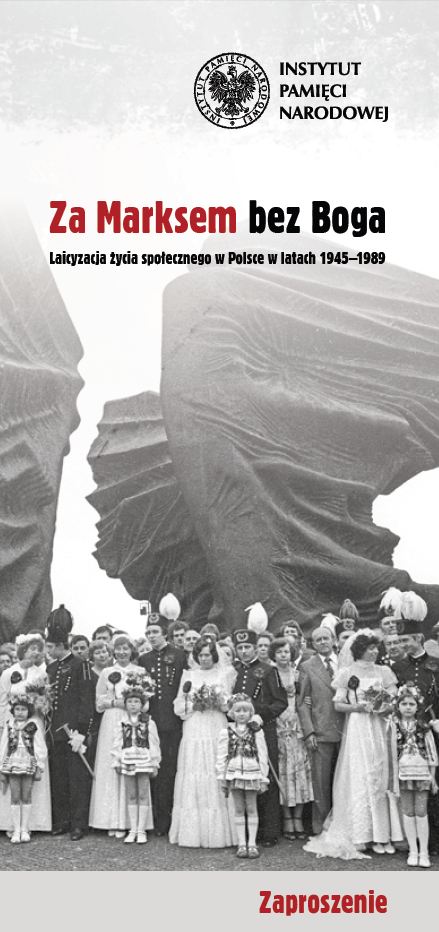 - Wystawa „Za Marksem bez Boga. Laicyzacja życia społeczno-politycznego w Polsce Ludowej w latach 1945–1989” została przygotowana przez Biuro Edukacji Publicznej IPN w Katowicach, a scenariusz wystawy przygotowały dr Łucja Marek oraz Monika Bortlik-Dźwierzyńska. Projekt graficzny wykonał Bogusław Nikonowicz. Na wystawie zaprezentowano materiały (fotografie, plakaty, druki ulotne, dokumenty, fragmenty kronik szkolnych, materiały prasowe) ze zbiorów osób prywatnych i instytucji, m.in. archiwów Centrali i oddziałów IPN, Archiwum Państwowego w Katowicach, Biblioteki Śląskiej w Katowicach, urzędów stanu cywilnego, kilkunastu placówek muzealnych oraz placówek kulturalnych z terenu województwa katowickiego.