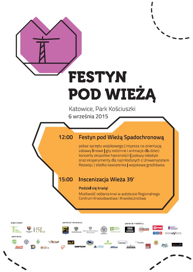 W dniach od 4 do 6 września 2015 r. odbędą się obchody Święta Katowickiego Hufca ZHP im. Bohaterów Wieży Spadochronowej. Jednym z głównym wydarzeń jest 20. Ogólnopolski Rajd Szlakiem Wieży Spadochronowej. 6 września 2015 r., o godz. 12.00, rozpocznie się Festyn pod Wieżą (w parku Kościuszki w Katowicach), w programie m.in.: pokaz sprzętu wojskowego, inscenizacja pt. „Wieża '39”.