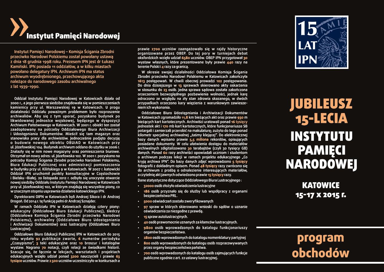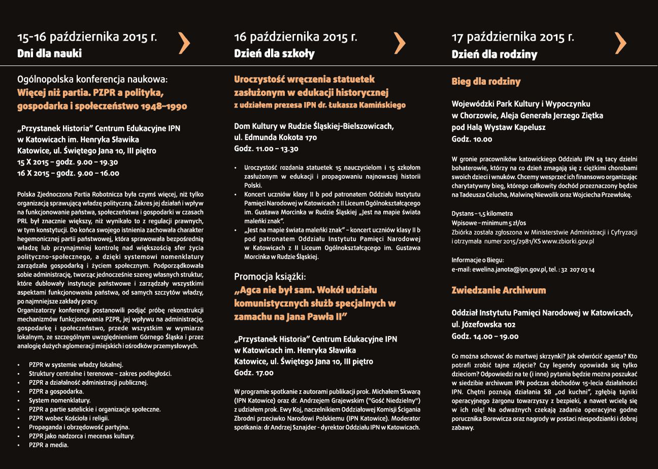 Kalendarium wydarzeń zaplanowanych przez Oddział IPN w Katowicach 15–17 października 2015 r.
