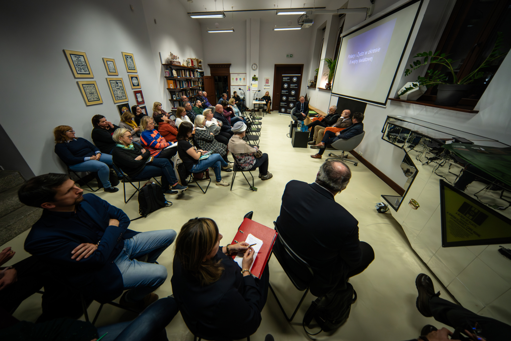 Po części wykładowej odbyła się dyskusja panelowa w temacie "Polacy wobec Zagłady", prowadzona przez dr. Romana Gieronia z OIPN w Krakowie. W panelu uczestniczyli znakomici eksperci w dziedzinie historii, prof. dr hab. Andrzej Żbikowski z Żydowskiego Instytutu Historycznego/Uniwersytetu Warszawskiego, dr hab. Grzegorz Berendt z Muzeum II Wojny Światowej/Uniwersytetu Gdańskiego oraz dr Tomasz Domański z Delegatury IPN w Kielcach.