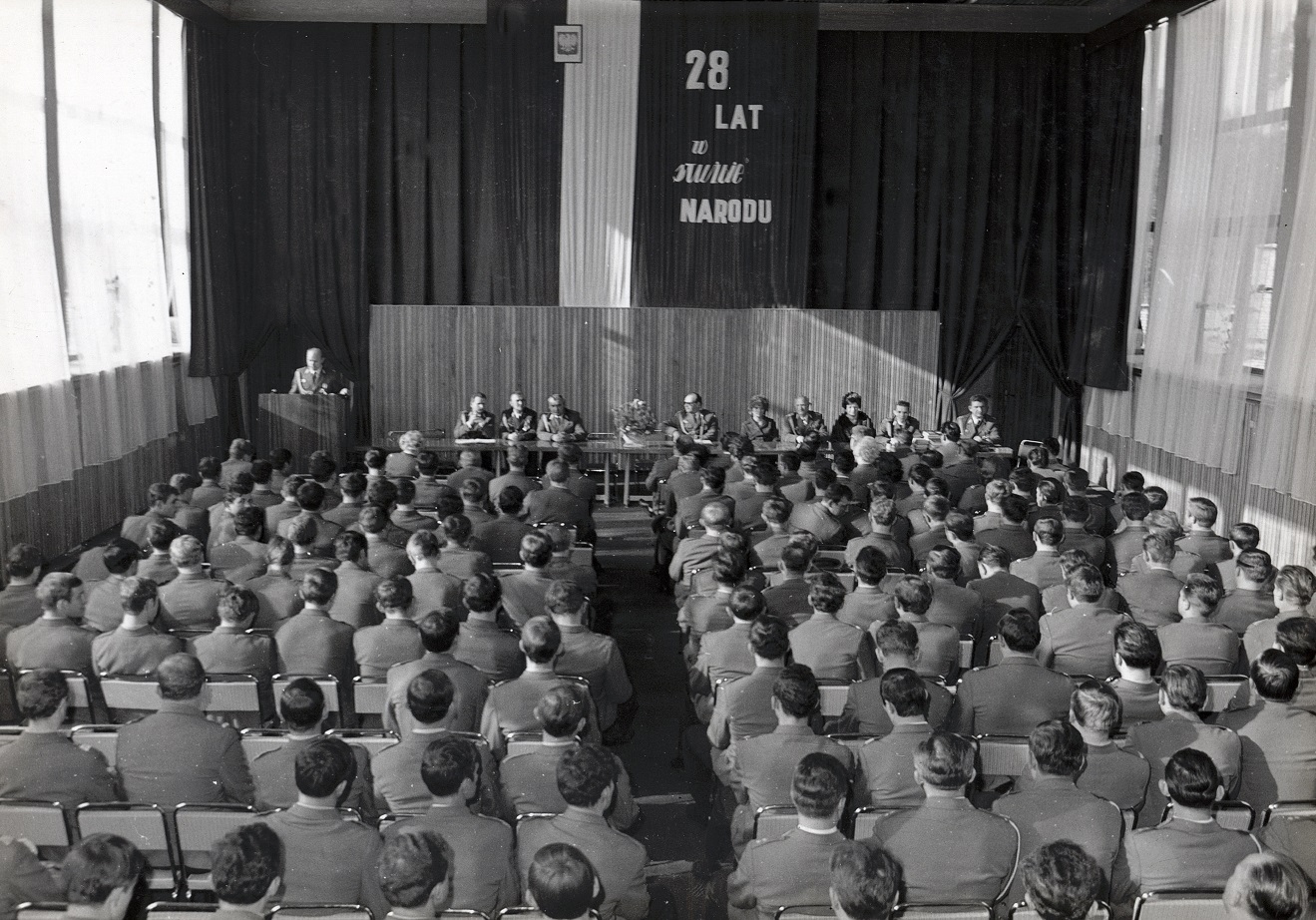 Akademia z okazji piętnastolecia ZOMO, grudzień 1971 r. Przemawia Benedykt Cader, przyszły komendant wojewódzki MO w Katowicach. -