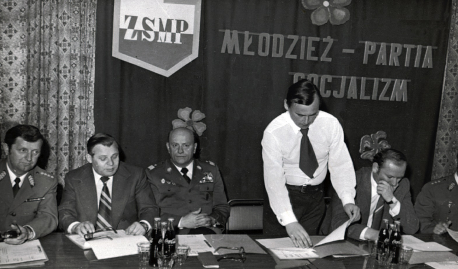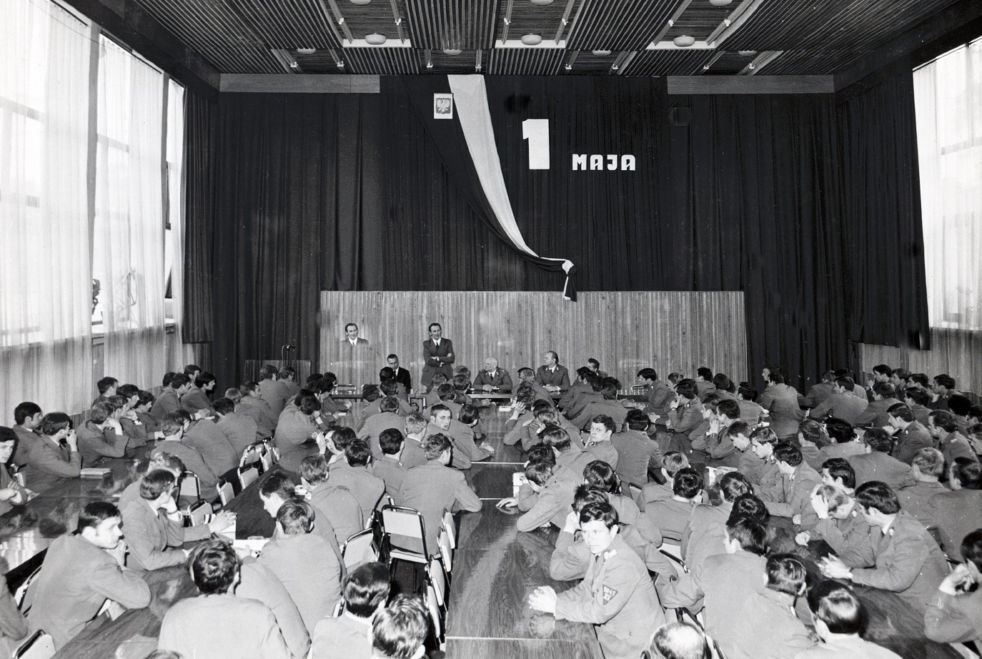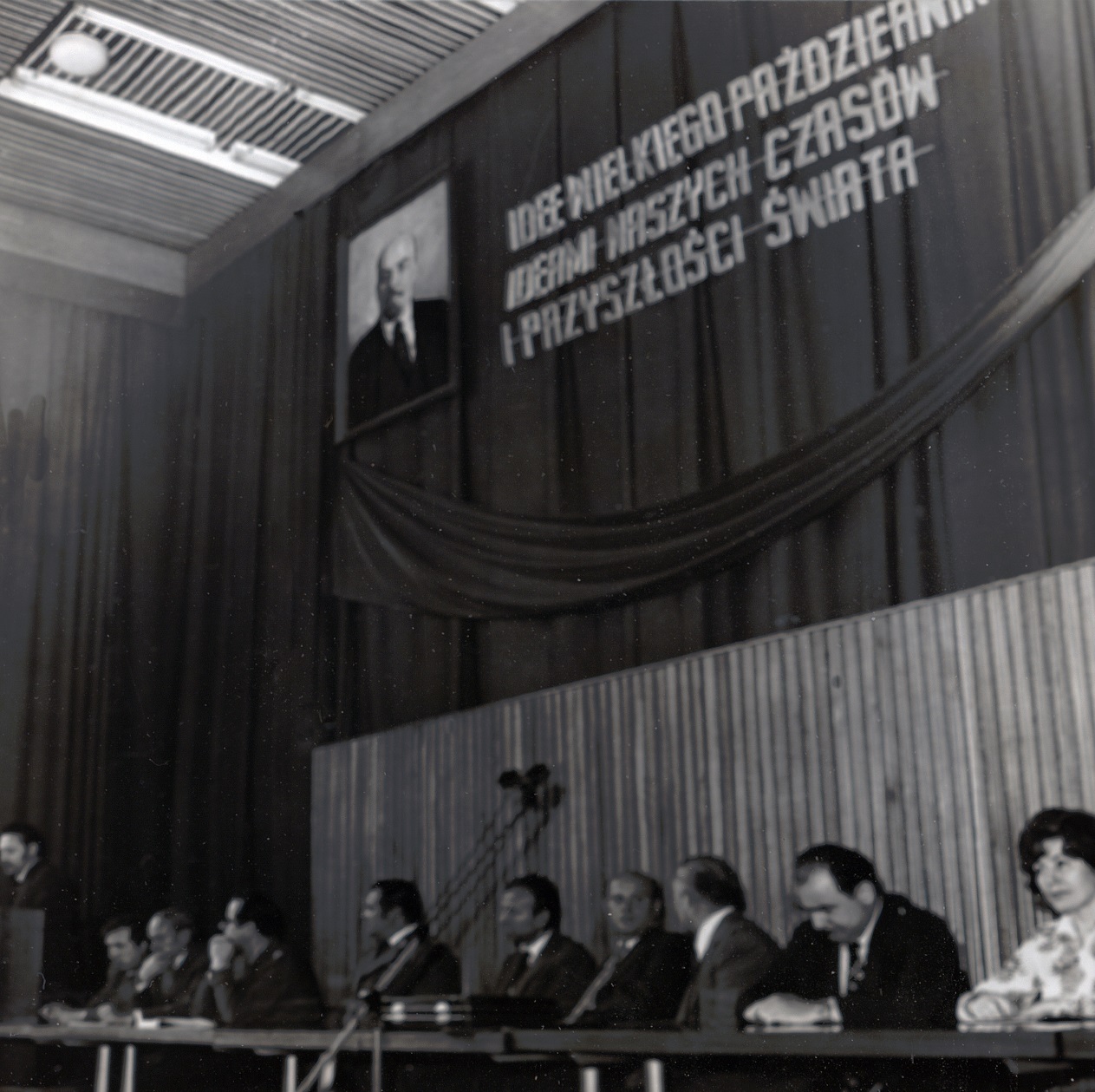 Plenarne posiedzenie Zarządu Zakładowego Związku Socjalistycznej Młodzieży Polskiej, 4 czerwca 1976 r. W środku zdjęcia siedzi komendant wojewódzki MO Benedykt Cader. Zwracamy uwagę na zaawansowany wiek młodzieży ze zdjęcia -