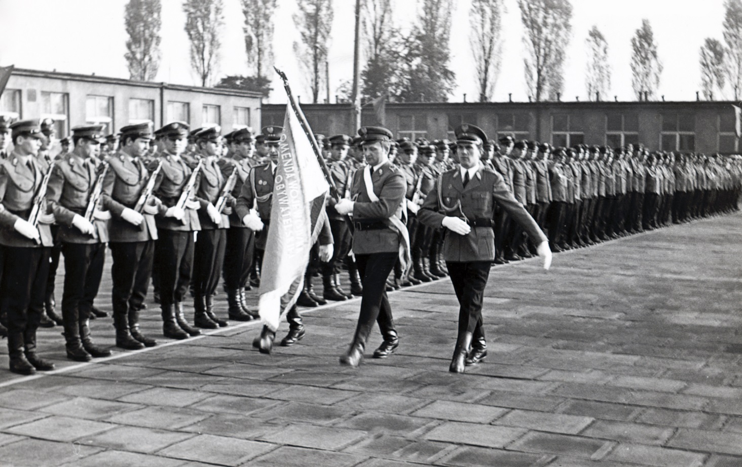 Ślubowanie funkcjonariuszy dwóch kompanii Batalionów Centralnego Podporządkowania (czyli poborowych, odbywających służbę zasadniczą w MO), 27 listopada 1972 r. -