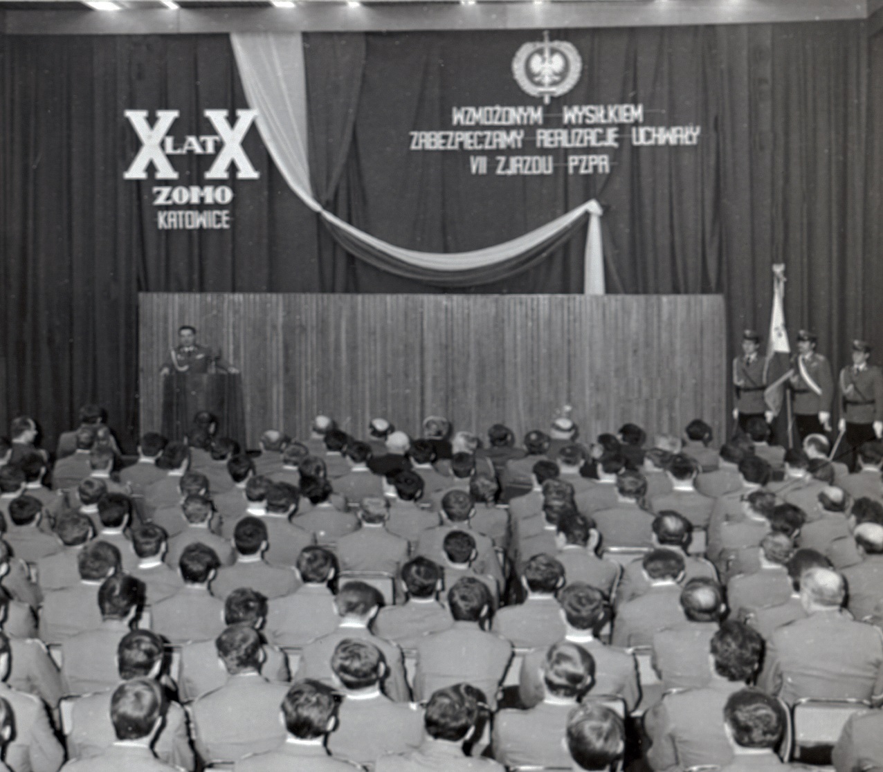 Z dużego zbioru fotografii zawartych w omawianej kronice publikujemy na początek te związane z uroczystościami państwowymi i resortowymi. Na zdjęciach kilka razy pojawią się m.in. Jerzy Ziętek (przewodniczący Prezydium WRN/wojewoda katowicki) oraz komendant wojewódzki MO Benedykt Cader.