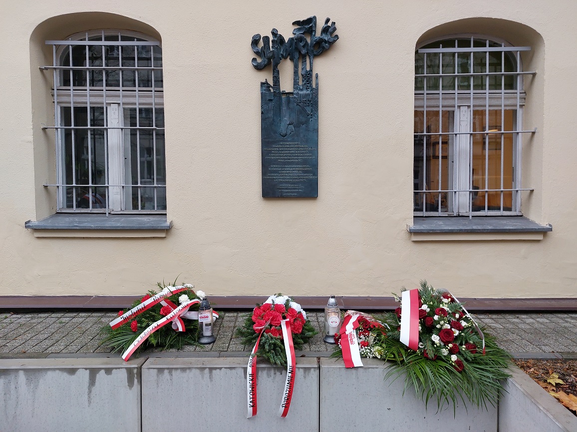 W 42. rocznicę wprowadzenia stanu wojennego złożono kwiaty przy tablicy poświęconej działalności MKZ Katowice w latach 1980-1981. Fot. Angelika Blinda/IPN
