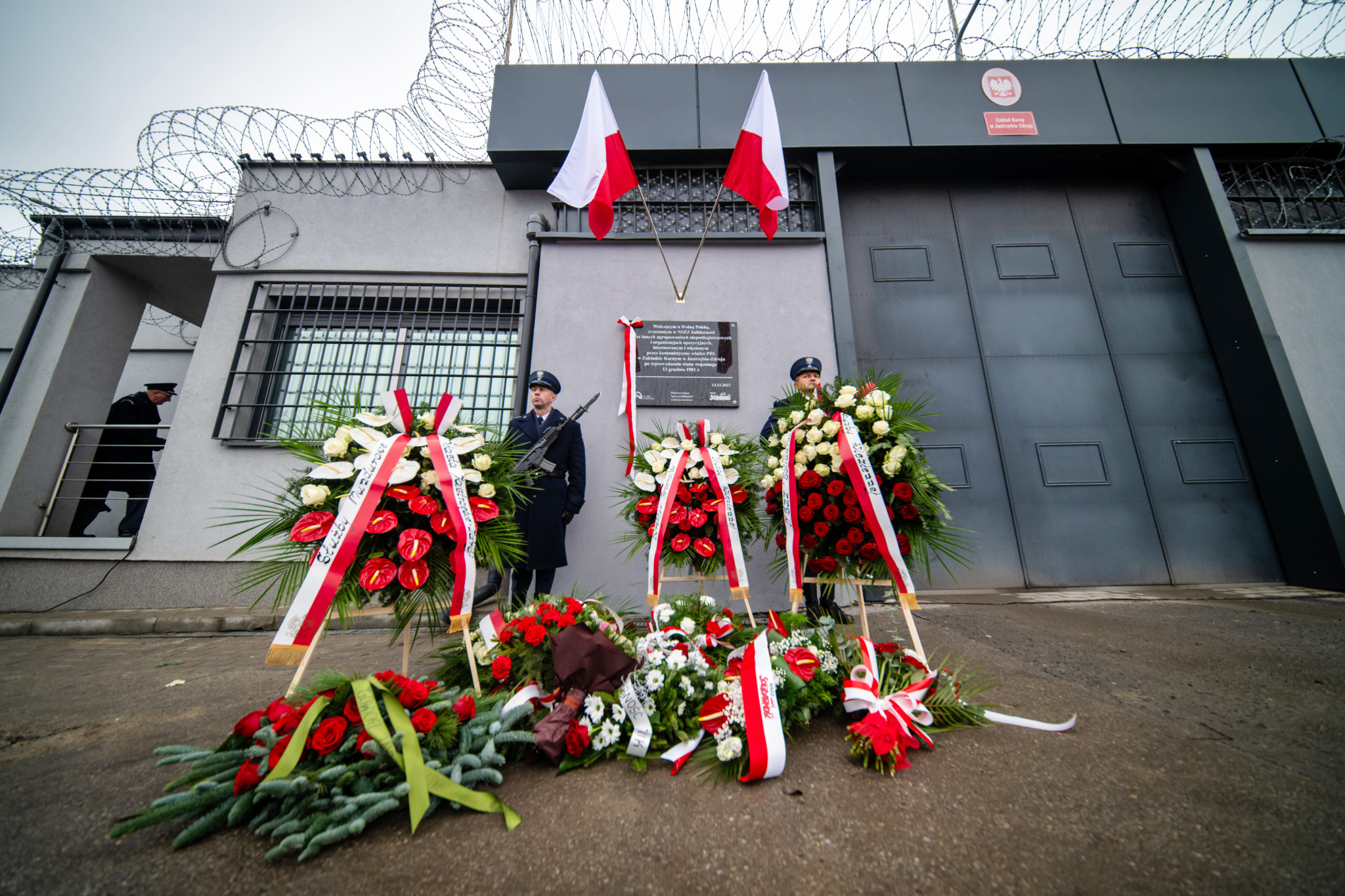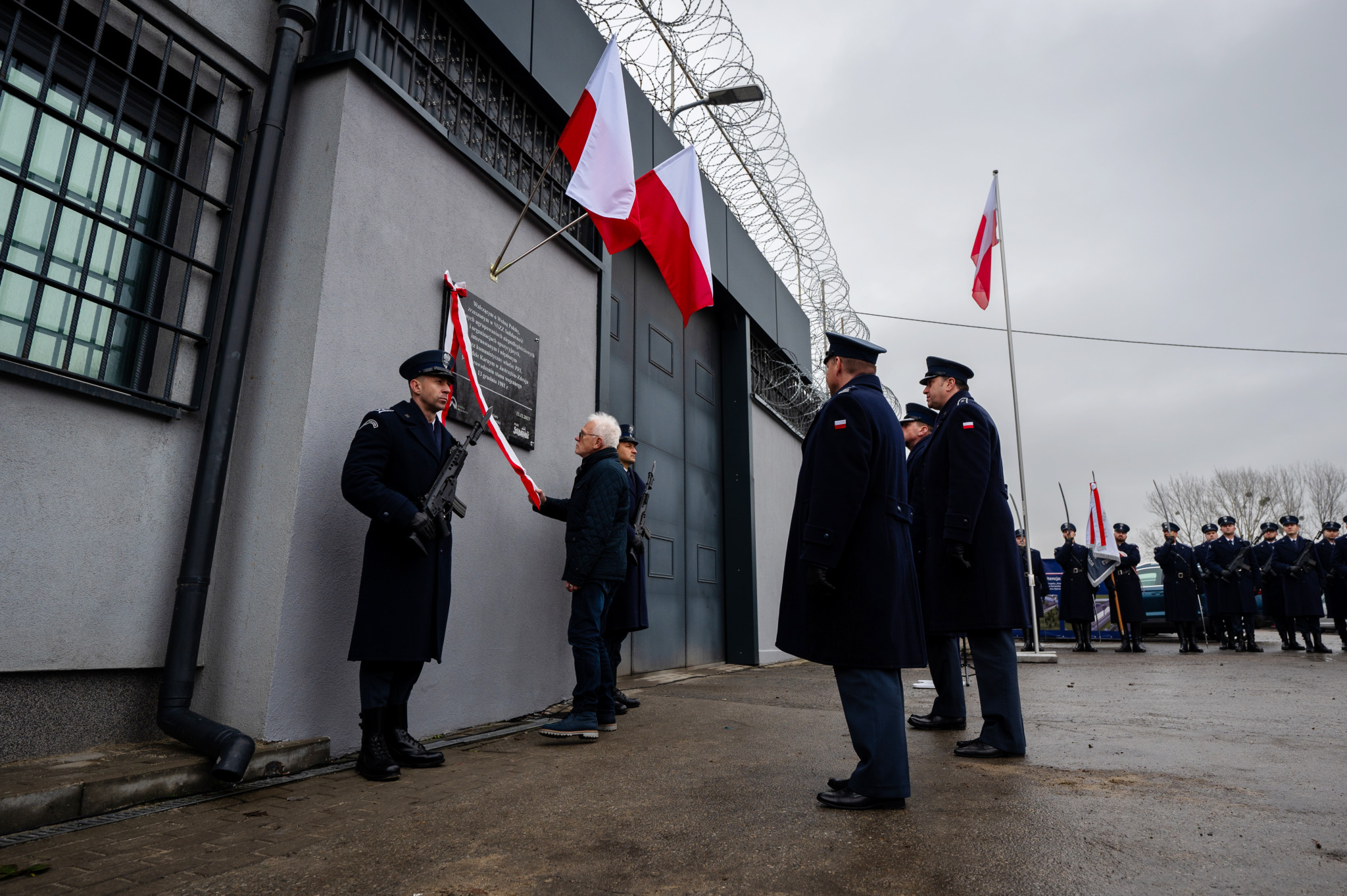 Odsłonięcie tablicy upamiętniającej powstanie ośrodka odosobnienia dla opozycjonistów, który powstał w Zakładzie Karnym w Jastrzębiu-Zdroju w 1981 r. Fot. Krzysztof Łojko/IPN -