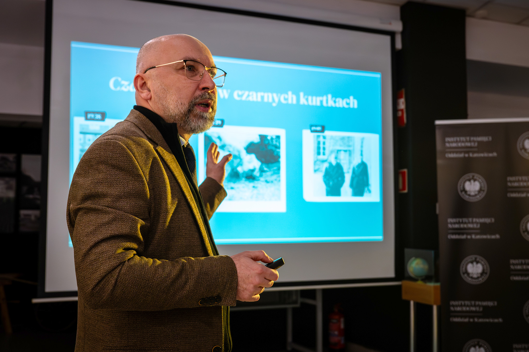 Prelekcja ,,Odyseja Czarnych Diabłów. Udział 1 Dywizji Pancernej gen. Stanisława Maczka w walkach na Zachodzie Europy" – Mysłowice, 11 stycznia 2024. Fot.: IPN K. Łojko -