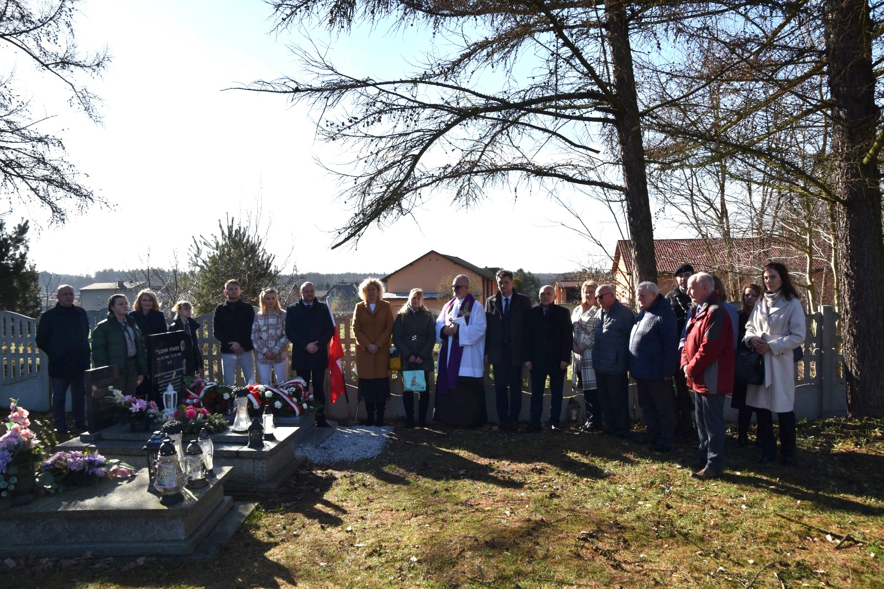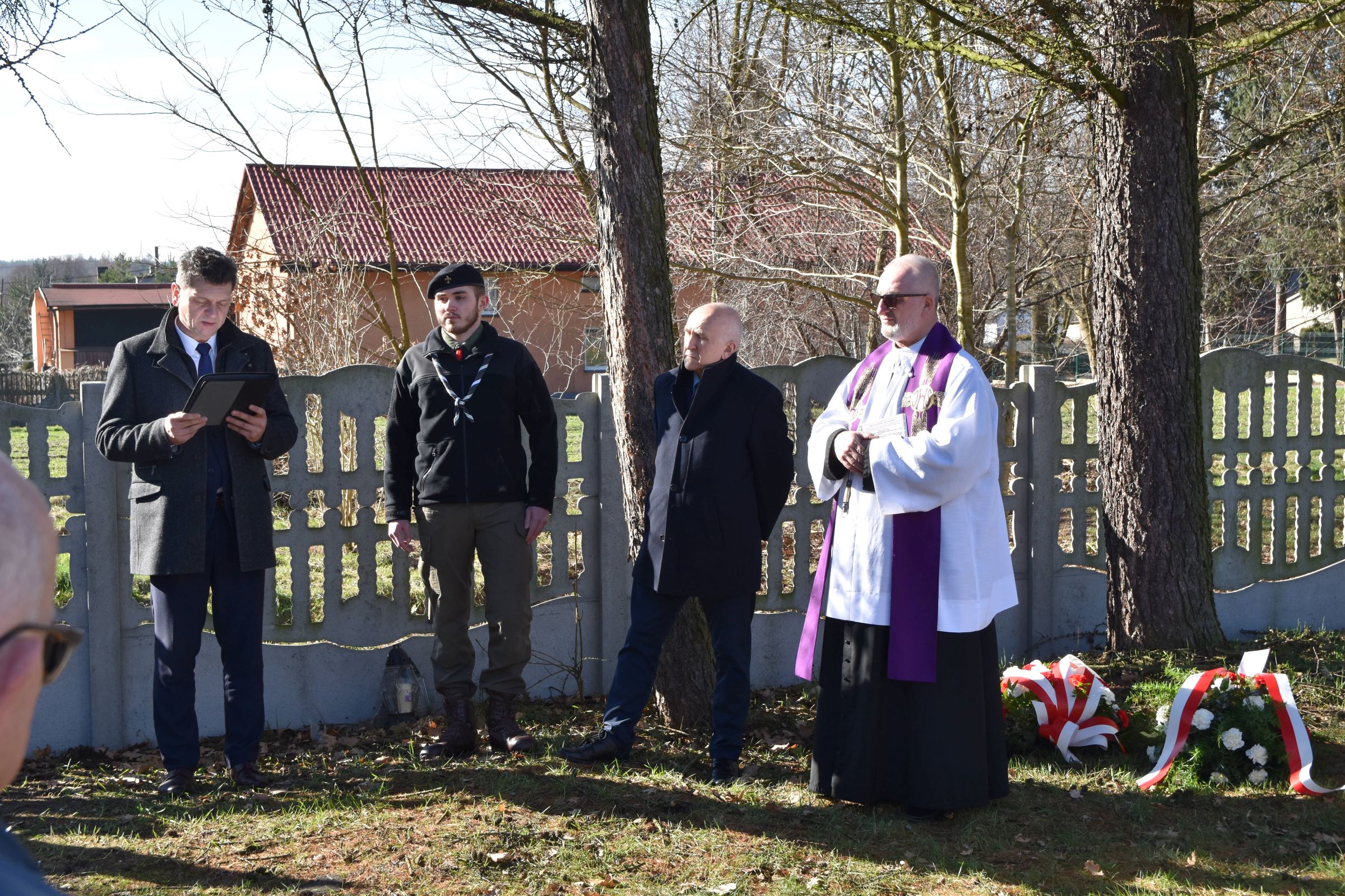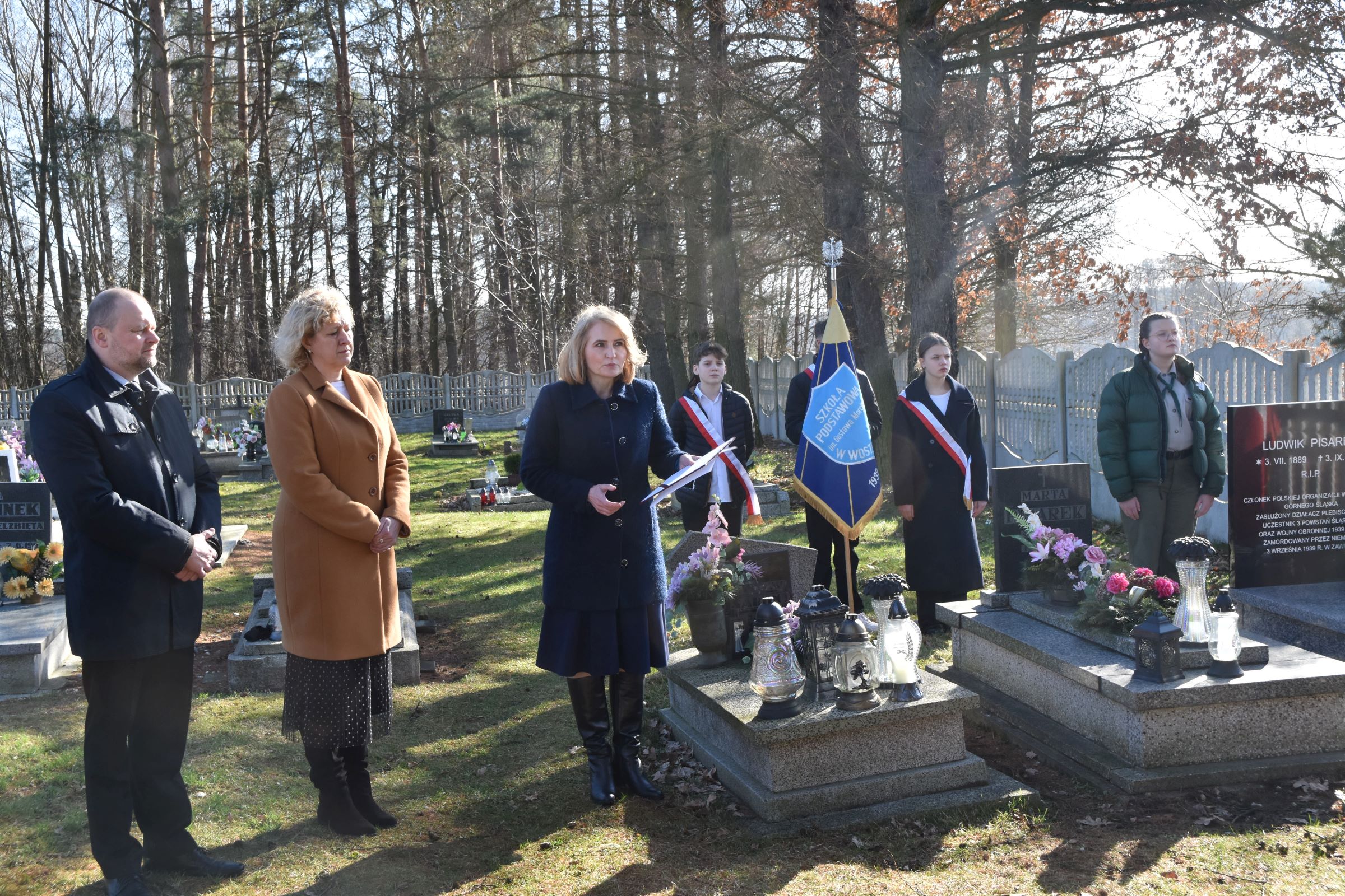 Po przywitaniu gości przez prowadzącą uroczystość Annę Binek-Zajdę z katowickiego OBUWiM z mową okolicznościową wystąpił burmistrz Mirosław Blaski, następnie ks. proboszcz Jerzy Kiecka dokonał aktu poświęcenia grobu. Na koniec złożono kwiaty oraz zapalono znicze.