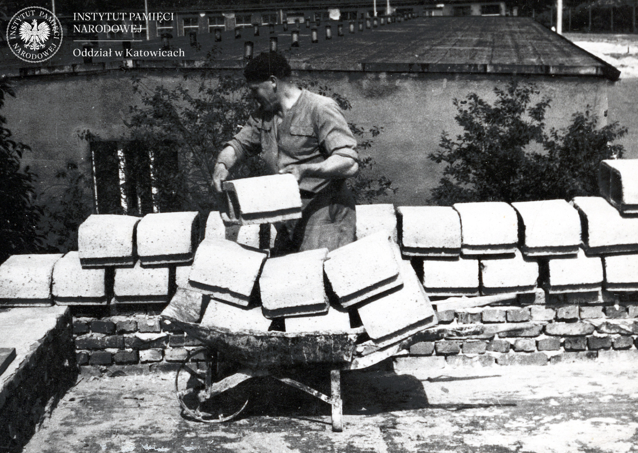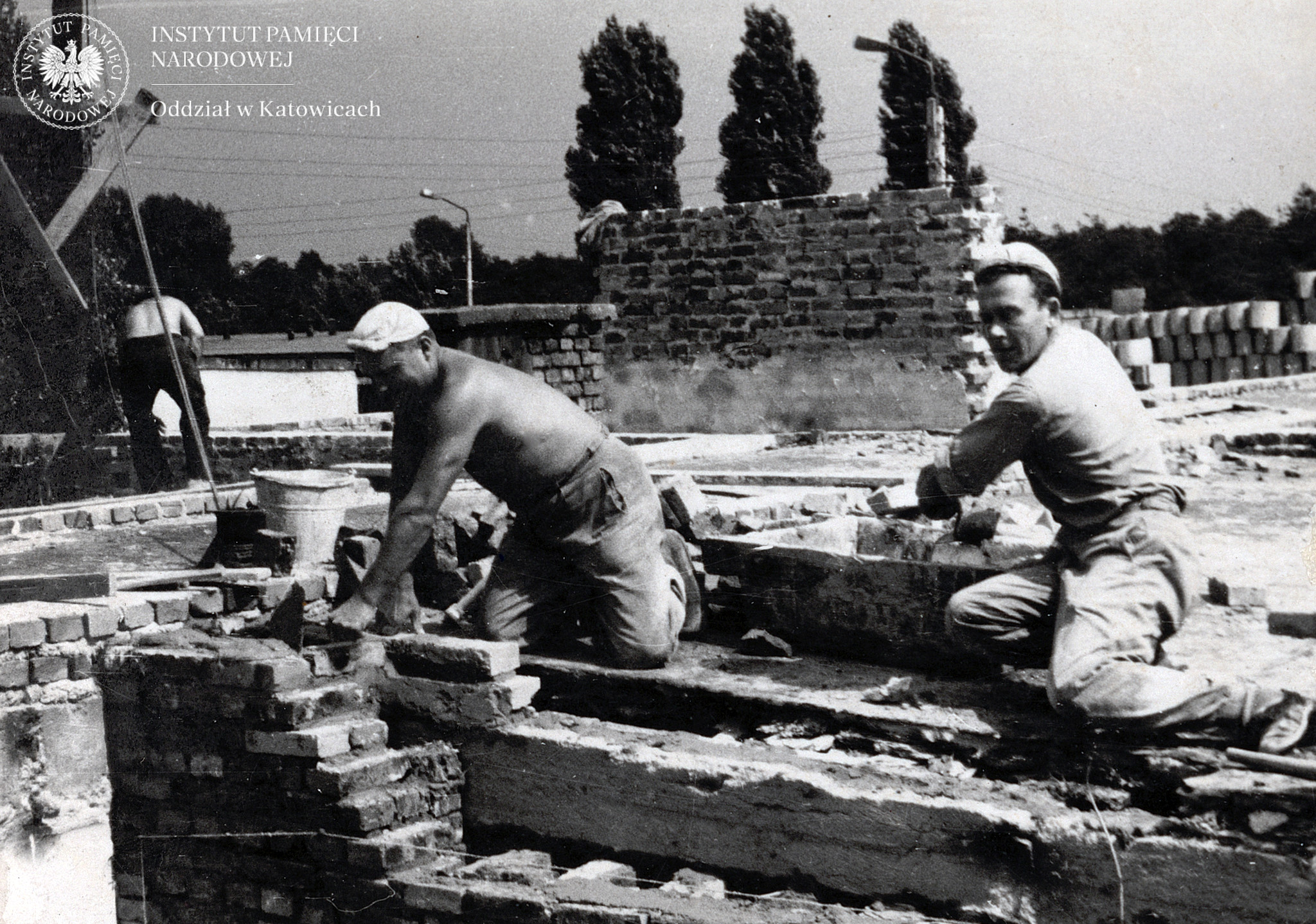 Prace przy przebudowie placu apelowego w jednostce ZOMO w Katowicach-Piotrowicach, sierpień 1965 r. -