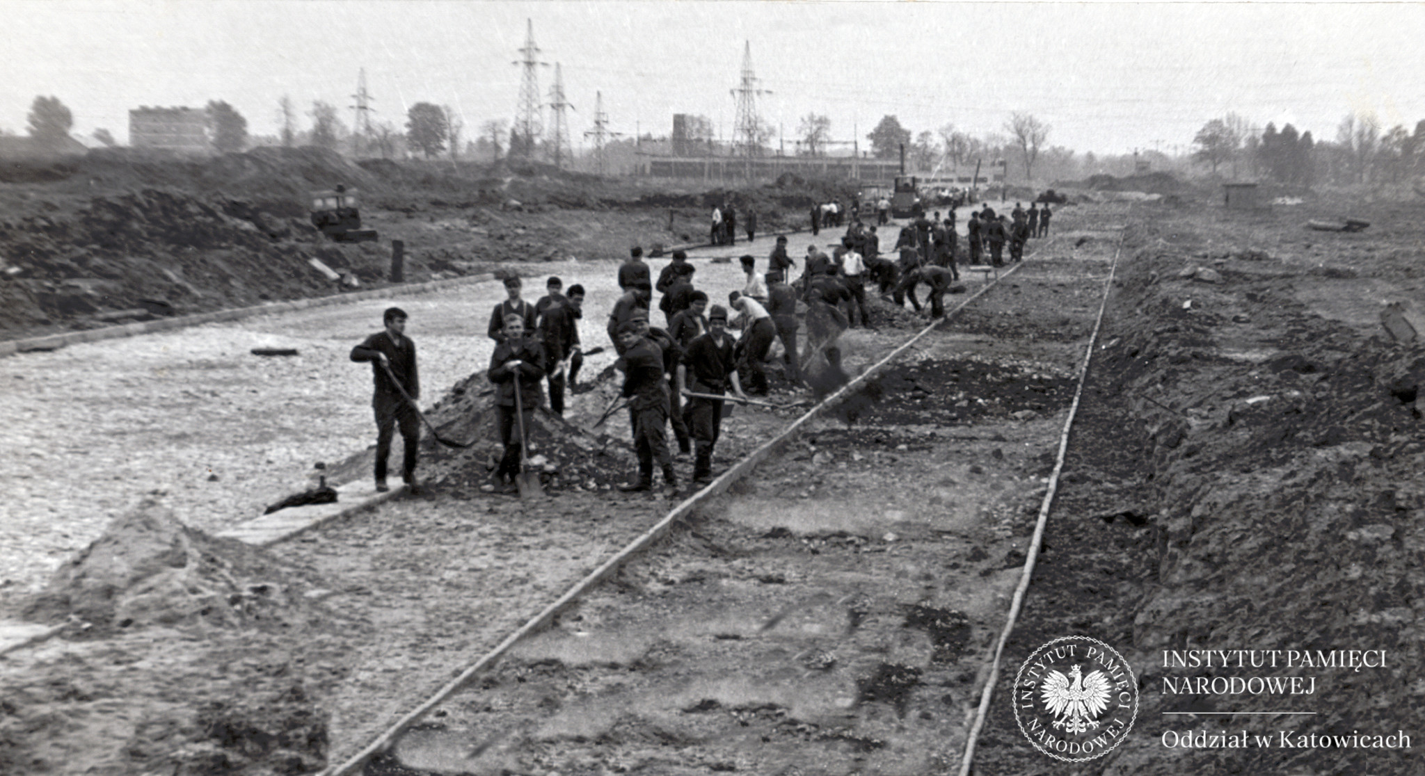 Przygotowanie terenu pod budowę gmachów KW MO w Katowicach, kwiecień 1975 r. -