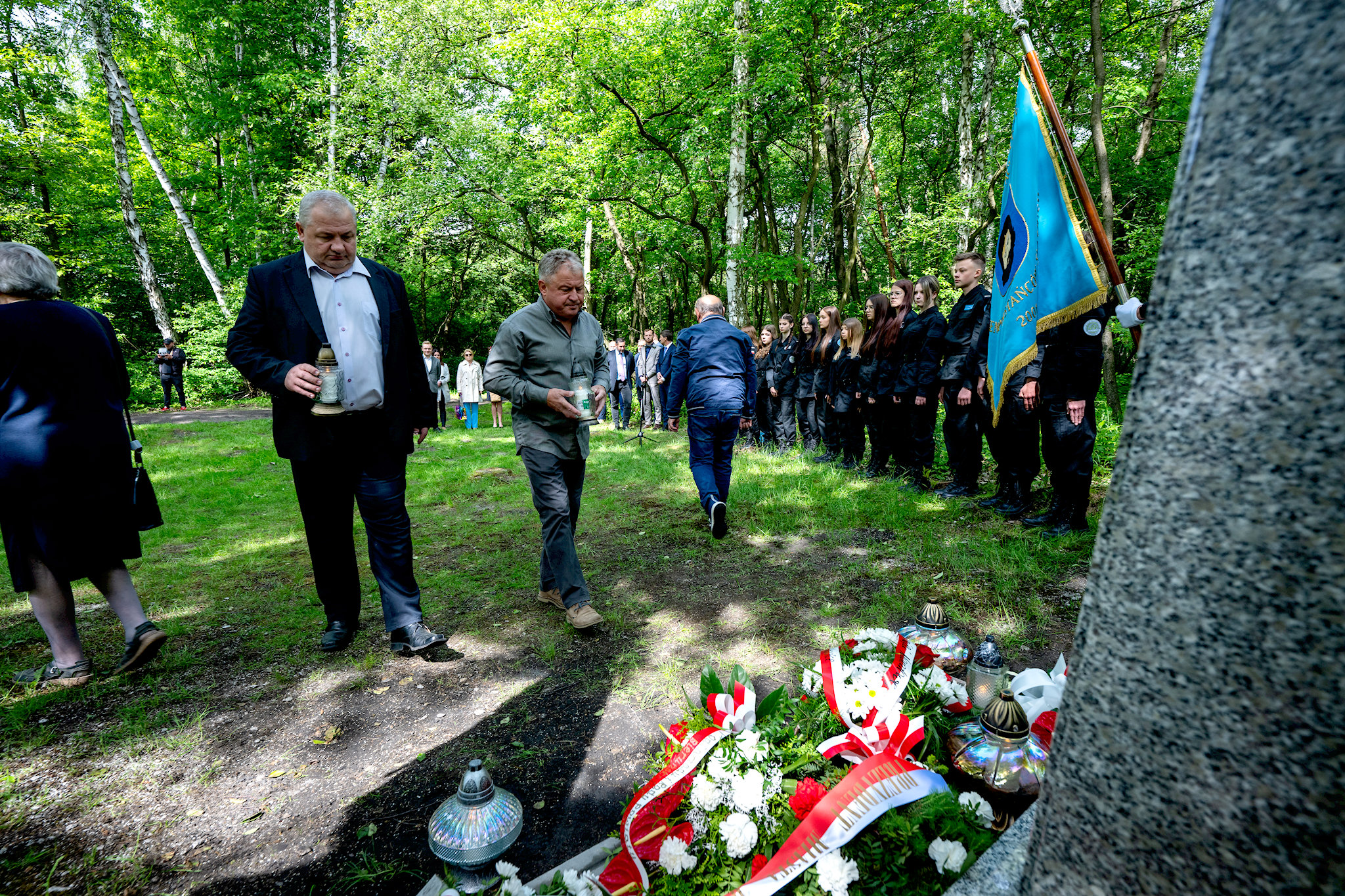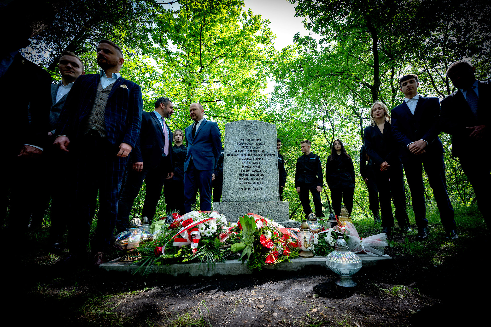 Po odsłonięciu pomnika potomkowie upamiętnionych wraz z Wojciechem Chmielem, Wiceprezydentem Miasta Mysłowice, Markiem Spyrą, przedstawicielem Rady Powiatu Bieruńsko-Lędzińskiego, Marcinem Majerem, Burmistrzem Miasta Lędziny, Adamem Plackowskim, Dyrektorem Muzeum Miasta Mysłowice, Janem Kwaśniewiczem, naczelnikiem Oddziałowego Biura Upamiętniania Walk i Męczeństwa IPN w Katowicach oraz młodzieżą i innymi delegacjami złożyli pod pomnikiem kwiaty, oddając hołd poległym.