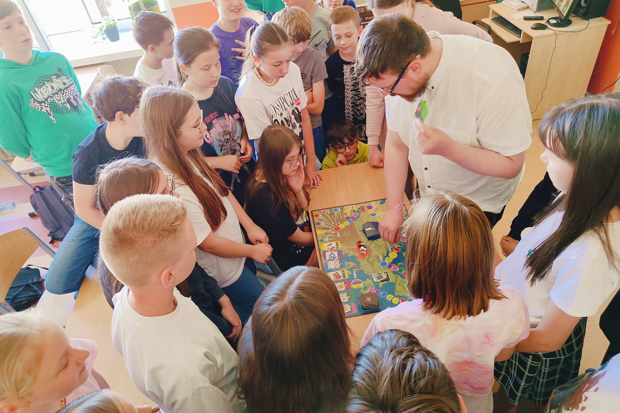 Najmłodsi uczniowie poznali życiorys adoptowanego przez polskich żołnierzy misia, który od razu skradł ich sympatię. Dzieci z zaciekawieniem słuchały jak sam Wojtek, bohater animowanego filmu „Co by było, gdyby zwierzęta mówiły?” opowiadał o swoich perypetiach w armii polskiej. Podczas zajęć przybliżono również historię Polski oraz Polaków w czasie II wojny światowej, wysiedlenia ich do ZSRS z okupowanych terenów, a następnie przedstawiono szlak wędrówki z Rosji, przez Iran, Egipt, Włochy aż do Szkocji. Starsze klasy dodatkowo miały możliwość zagrania w grę planszową „Miś Wojtek”.