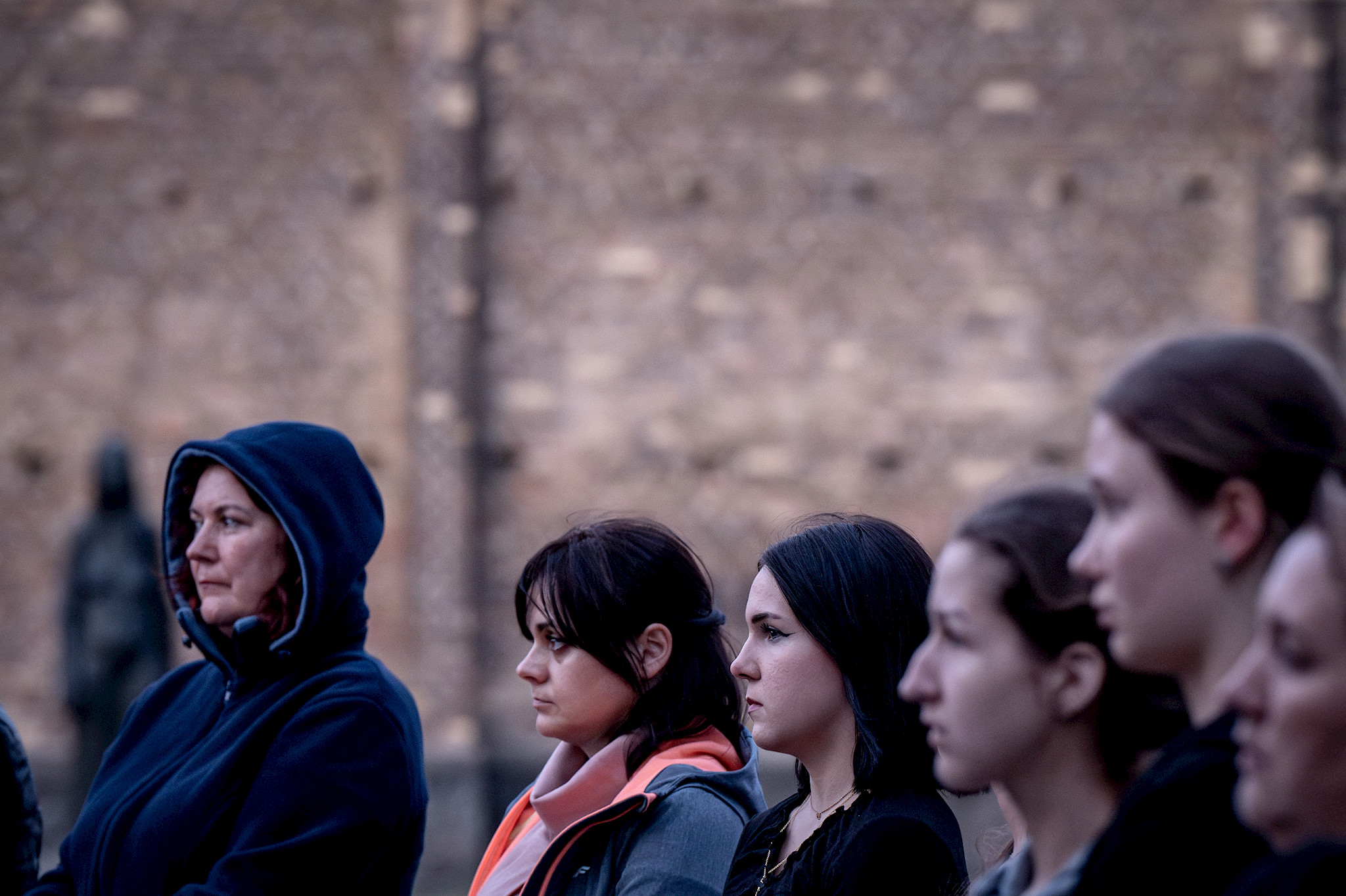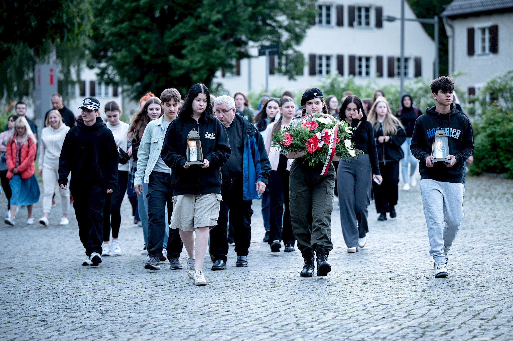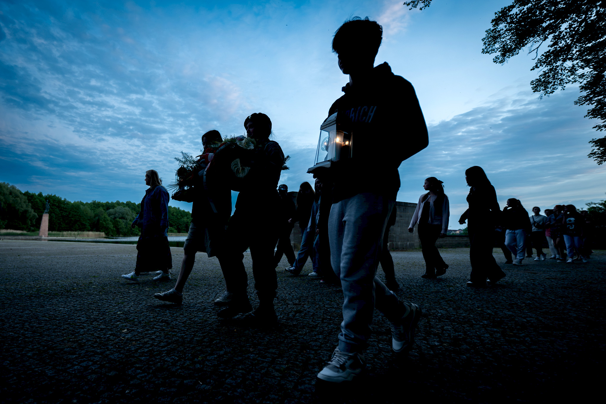 Następnie w miejscu, gdzie w 1944 r. stanął namiot – prowizoryczne schronienie dla tysięcy kobiet przywiezionych do Ravensbrück z powstania warszawskiego młodzież zapaliła znicz, by upamiętnić ofiary tego zbrodniczego procederu. Namiot był świadkiem niewyobrażalnego cierpienia z zimna, głodu, pragnienia i chorób.