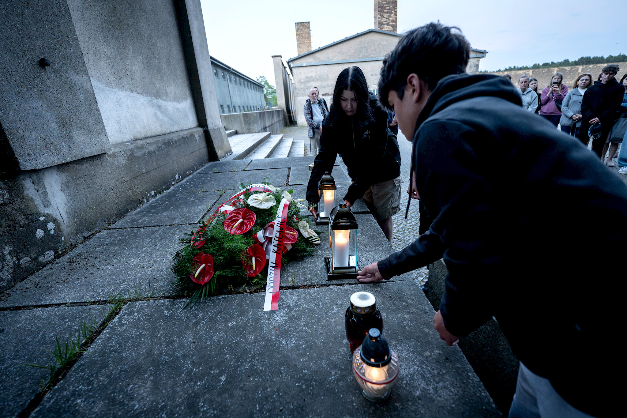 Pod tablicą narodową upamiętniającą wszystkie Polki – więźniarki FKL Ravensbrück oraz przy pomniku „Niosąca” – również zapalono znicze.