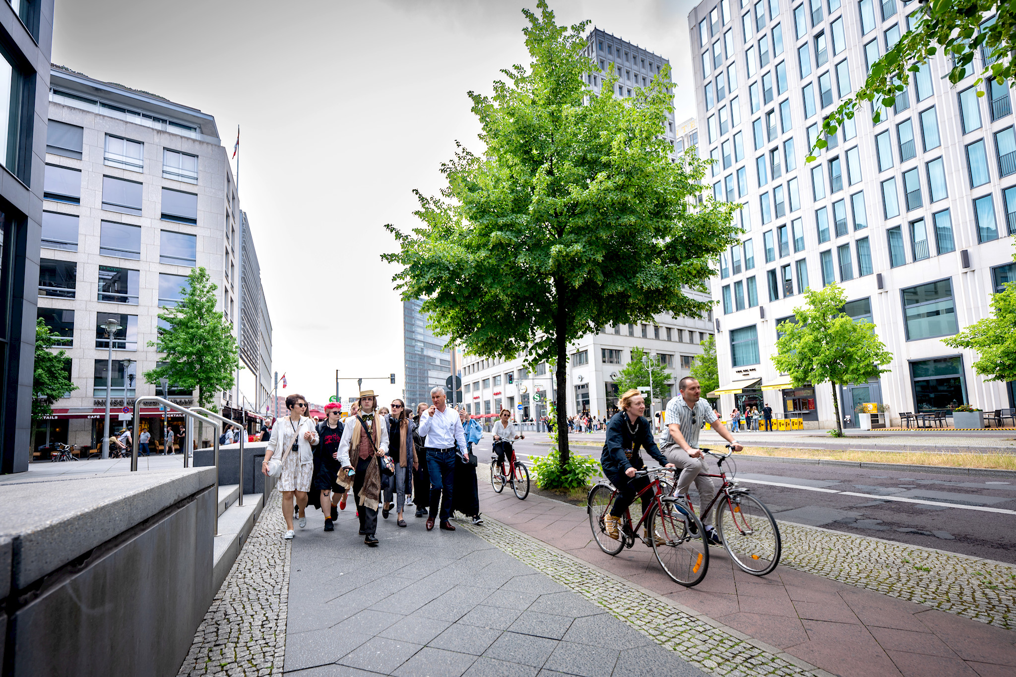 W centrum Berlina jednym z obowiązkowych punktów wizyty był Pomnik Pomordowanych Żydów Europy, a później Brama Brandenburska, Reichstag (budynek siedziby parlamentu Niemieckiego należał pierwotnie do polskiego ziemianina, hrabiego Anastazego Raczyńskiego). Grupa odwiedziła również miejsce, gdzie przetrzymywany był i torturowany m.in. gen. Stefan „Grot” Rowecki, komendant główny AK – Muzeum Topografii Terroru. Przy dawnej siedzibie gestapo do dziś obejrzeć i dotknąć można fragmentu Muru Berlińskiego – ideologicznego symbolu dzielącego Niemcy w czasie zimnej wojny.