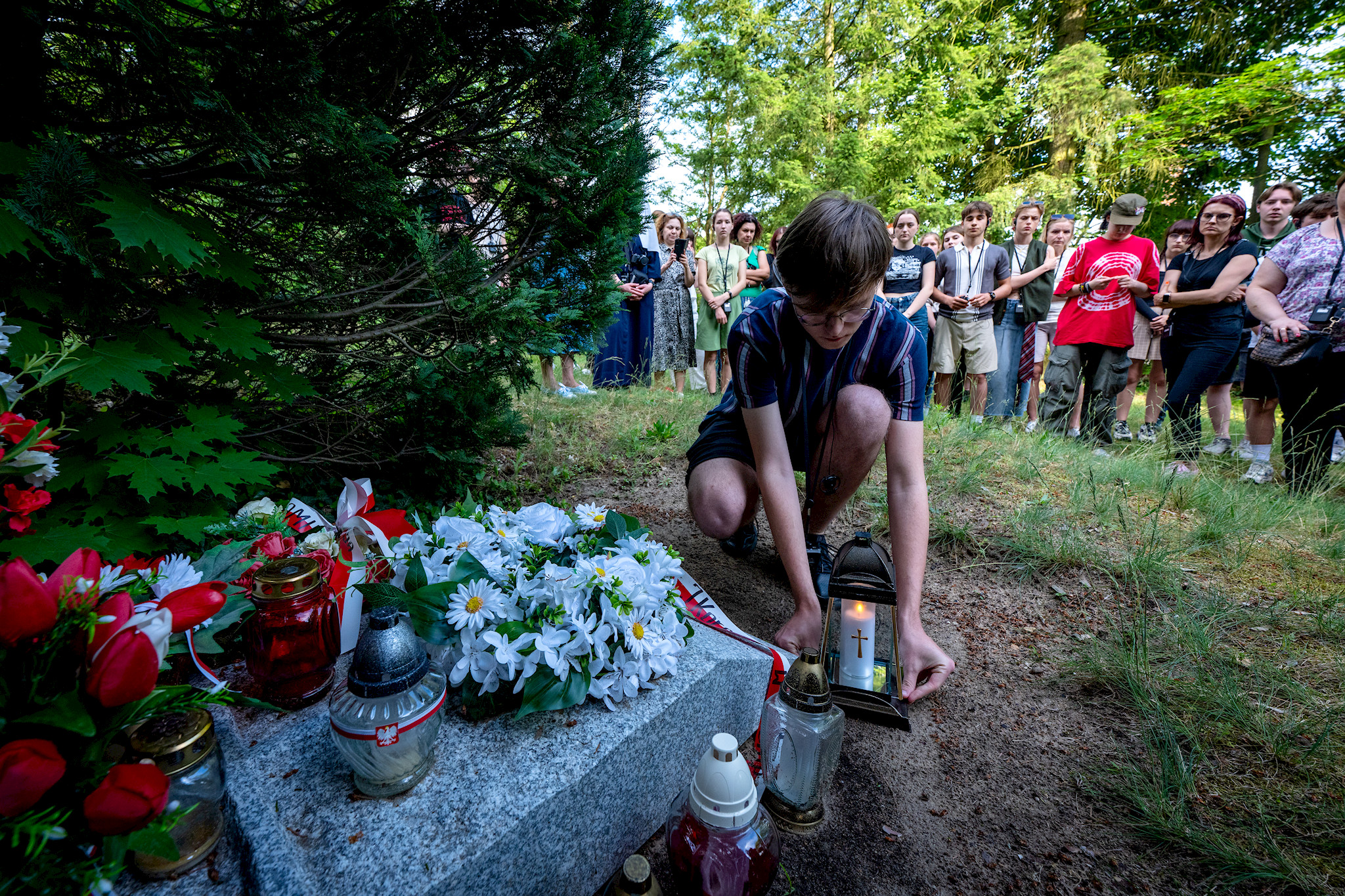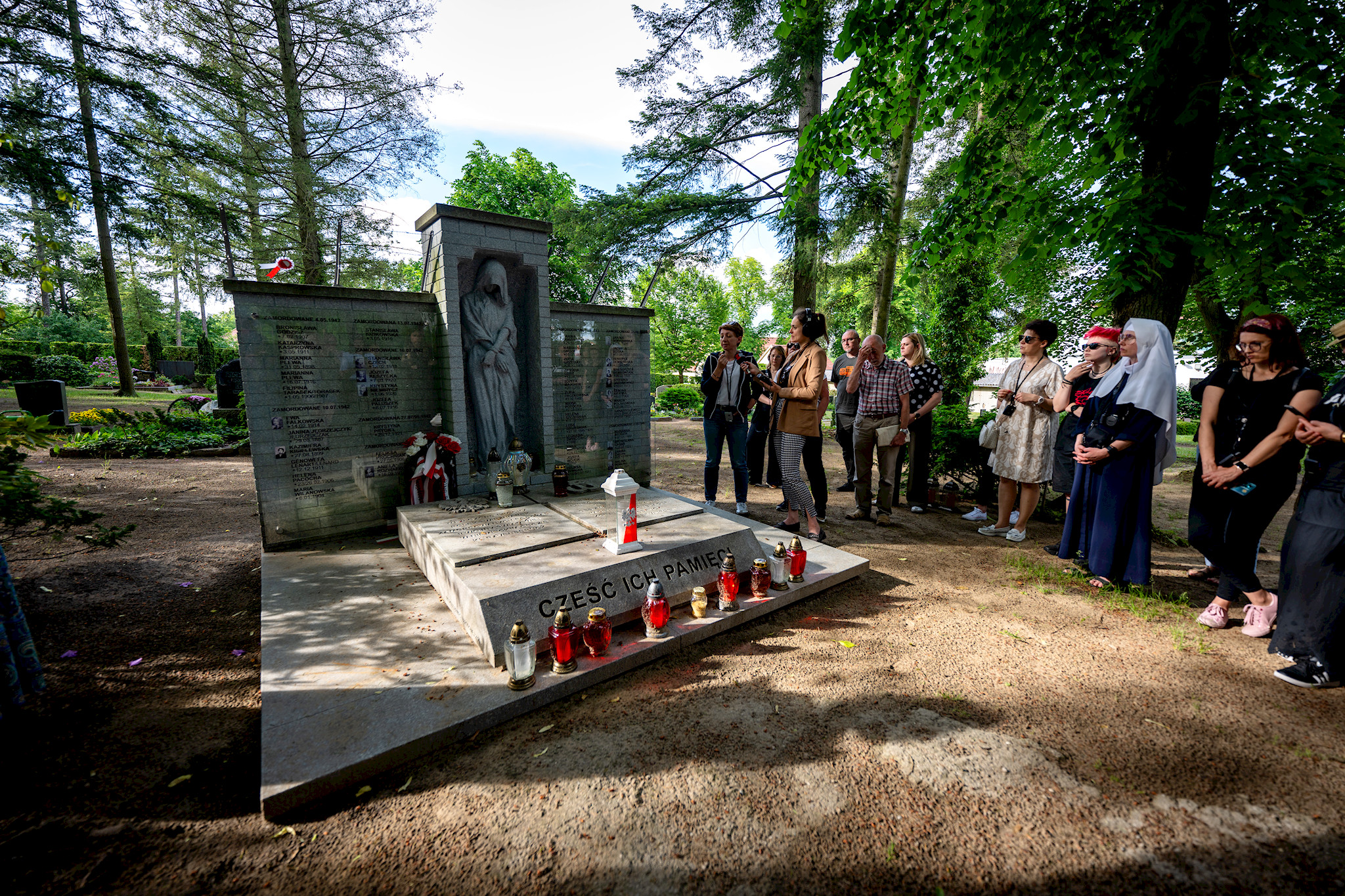 Po powrocie z Berlina młodzież zatrzymała się w Fürstenbergu, na cmentarzu komunalnym. Tu zebrani zapalili znicze na grobie polskich więźniarek rozstrzelanych w Ravensbrück w 1942 r. Ich prochy zostały tutaj zidentyfikowane w 2019 r., a uroczysty pogrzeb odbył się w 2022 r. Młodzież uhonorowała także grób Marka Rzewuskiego, polskiego chłopca urodzonego w obozie w grudniu 1944 r., którego mama po powstaniu warszawskim trafiła do Ravensbrück. Marek zmarł w kwietniu 1945 r. podczas ewakuacji obozu, a jego mamie udało się godnie pochować chłopca na cmentarzu w Fürstenbergu, co w tamtym czasie było wręcz niemożliwe. Grób Marka został odnaleziony przez Pawła Woźniaka kilka lat temu i do dzisiaj jest pod jego opieką.