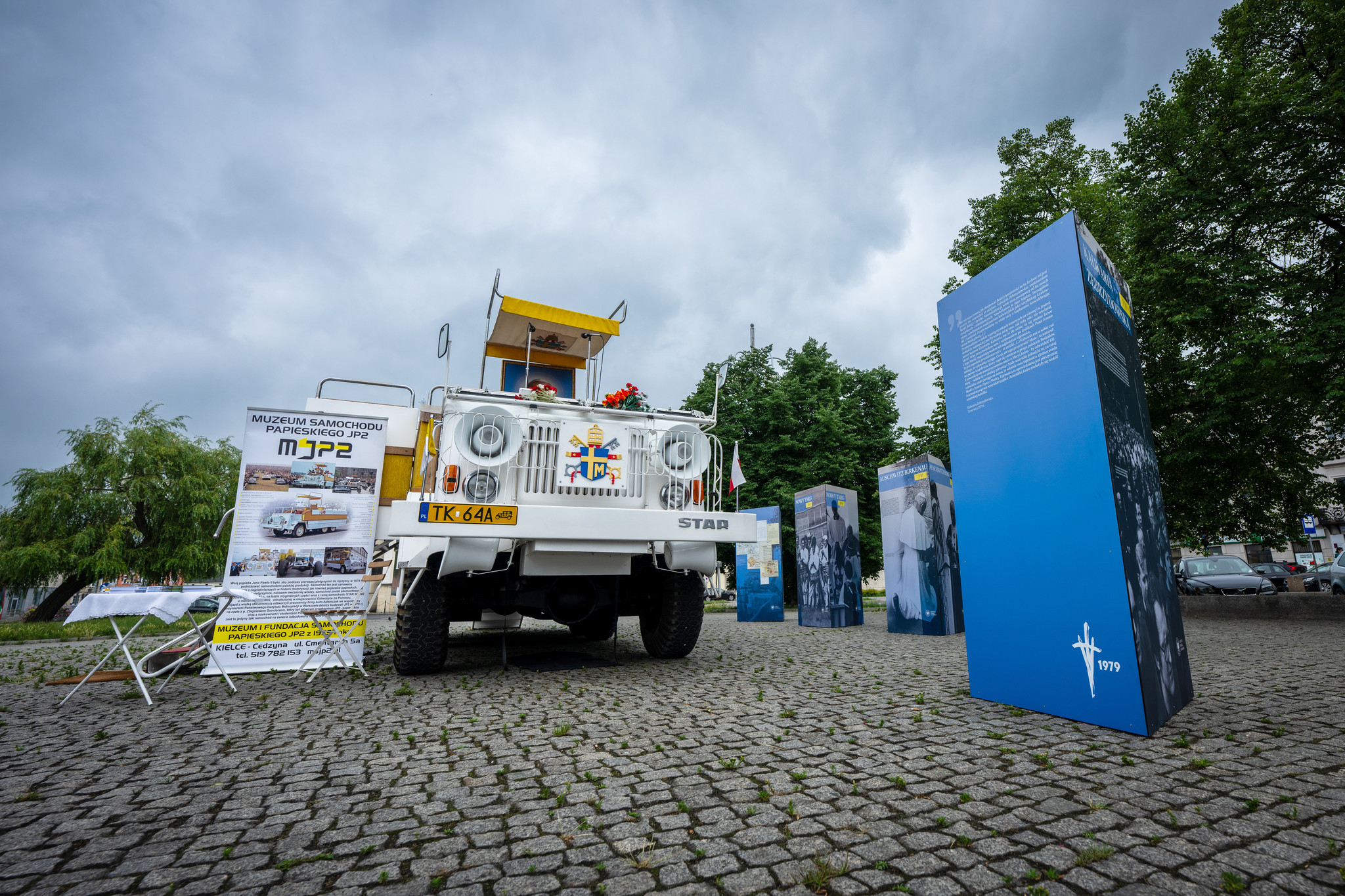 Nieodłącznym elementem wystawy, a zarazem ciekawostką jest towarzyszący jej samochód papamobile, czyli pojazd zbudowany specjalnie na potrzeby transportu Ojca Świętego w trakcie jego podróży po Polsce. Prezentowany pojazd jest wierną repliką papamobile, zbudowaną z oryginalnych części na bazie samochodu ciężarowego Star 660, na co dzień prezentowaną w Muzeum Samochodu Papieskiego JP2 w Kielcach.