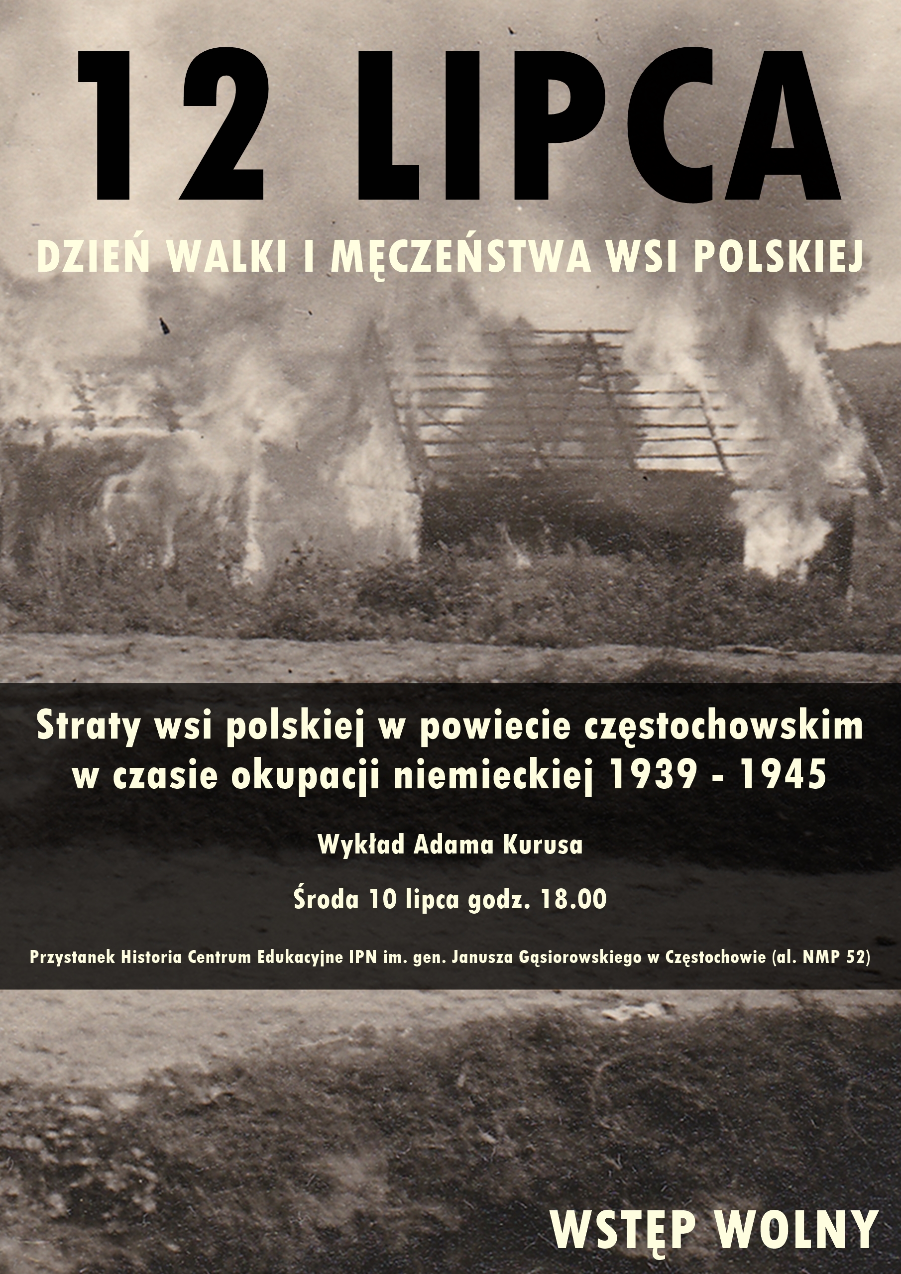 W środę 10 lipca w Przystanku Historia Centrum Edukacyjnym IPN im. gen. Janusza Gąsiorowskiego w Częstochowie odbył się wykład Adama Kurusa, historyka OBEN IPN Katowice, nt. „Straty wsi polskiej w powiecie częstochowskim w czasie okupacji niemieckiej 1939 - 1945". Wydarzenie związane było z przypadającym na 12 lipca Dniem Walki i Męczeństwa Wsi Polskiej - świętem państwowym ustanowionym 29 września 2017 roku w hołdzie mieszkańcom polskich wsi za ich patriotyczną postawę w czasie II wojny światowej. Jego data nawiązuje do rozpoczętej 12 lipca 1943 roku przez Niemców pacyfikacji Michniowa w województwie świętokrzyskim za sprzyjanie partyzantom Armii Krajowej.