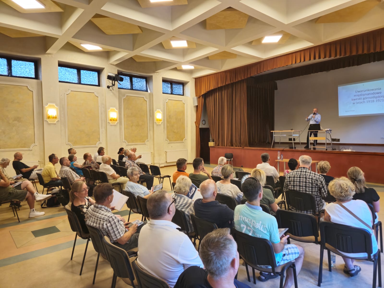 Wykład w sali teatralnej parafii Matki Bożej Nieustającej Pomocy w Mielcu zgromadził sporą grupę zainteresowanych, w tym osoby pochodzące z Górnego Śląska lub związane z naszym regionem.   W trakcie wykładu przedstawiono rywalizację polsko-niemiecką oraz francusko-brytyjską o wpływ na kształtowanie się granic po I wojnie światowej w tym rejonie Europy, oraz wyniki plebiscytu w kontekście budowanych w Paryżu i Londynie scenariuszy politycznych.