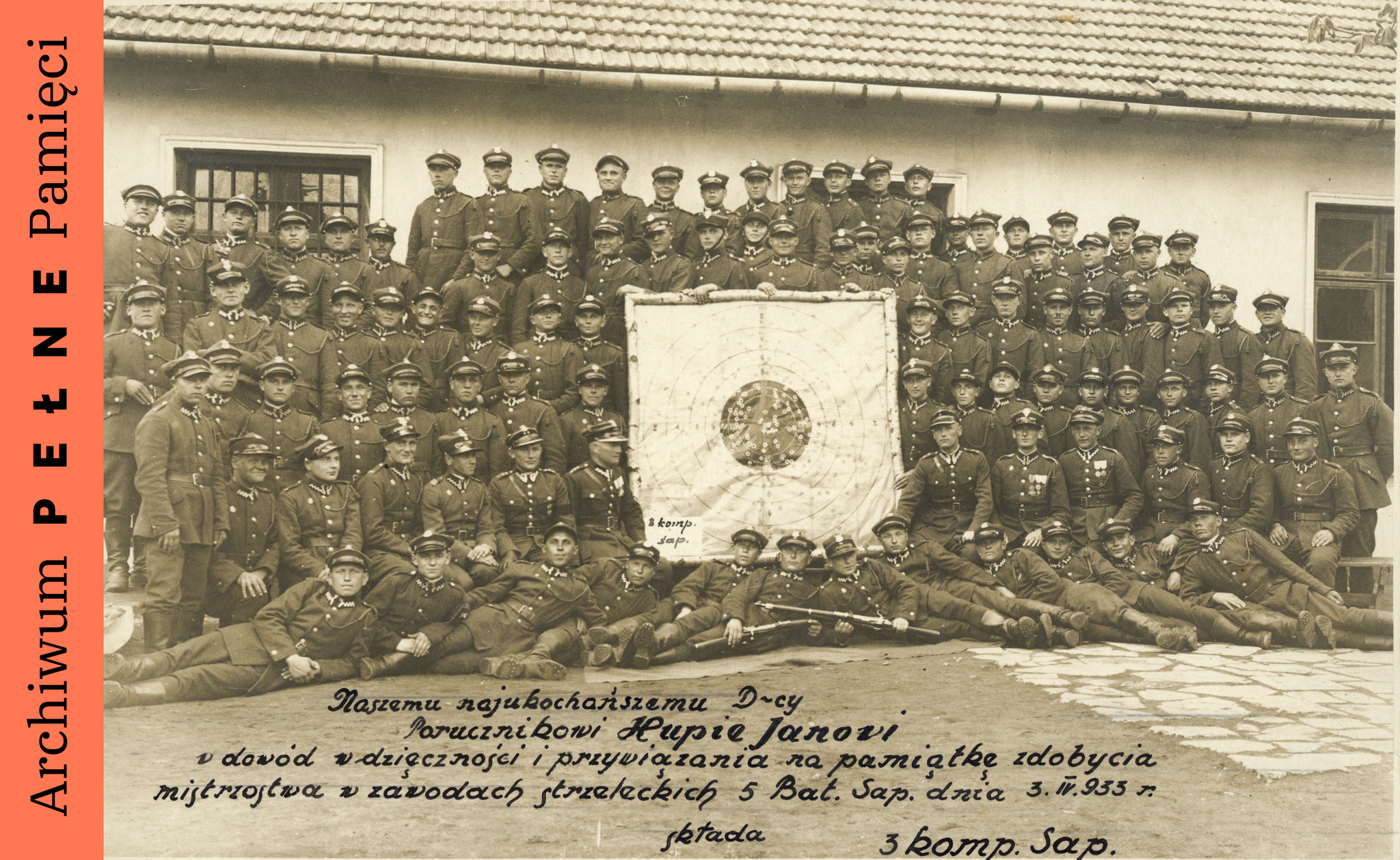 Fotografia 3 Kompanii Saperów dedykowana Janowi Hupie na pamiątkę zdobycia mistrzostwa w zawodach strzeleckich 5 Batalionu Saperów, 3 IV 1933 r., IPN Ka 454/193, t. 1