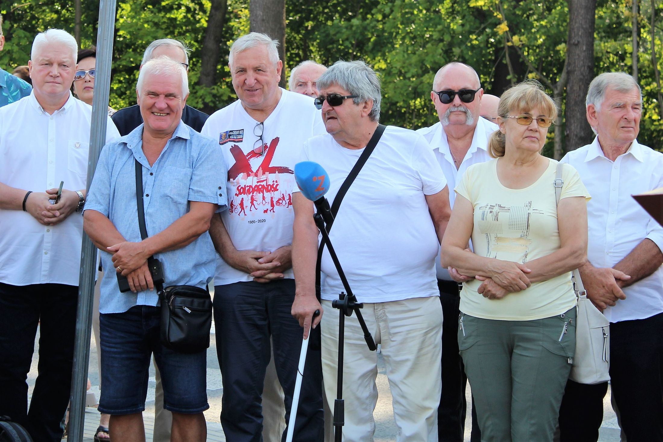 - Jest to pierwsze takie upamiętnienie „Solidarności” na Ziemi Żywieckiej. Jest to jednak przede wszystkim upamiętnienie osób, które tę „Solidarność” tworzyli, za nią cierpieli, którzy byli i pozostali wierni ideałom i wartościom, które stanowiły korzenie i fundament naszego związku – podkreślił podczas uroczystości przewodniczący podbeskidzkiej „Solidarności” Marek Bogusz. Wśród uczestników spotkania nie zabrakło takich osób – założycieli i działaczy żywieckiej „Solidarności”, także tych aktywnych w stanie wojennym, represjonowanych za „kontynuowanie zakazanej działalności związkowej”. W spotkaniu wzięli udział m.in. Jerzy Hilbrycht, Mieczysław Chamik, Emil Pawlik, Stanisława Sobczak, Kazimierz Jafernik, Władysław Sanetra, Krzysztof Jasek. Byli też zasłużeni związkowcy z innych części Podbeskidzia, w tym Marcin Tyrna, Henryk Juszczyk, Mirosław Styczeń, Jerzy Kasperek, Zbigniew Retecki, Tadeusz Krywult, Jerzy Borowski i inni.