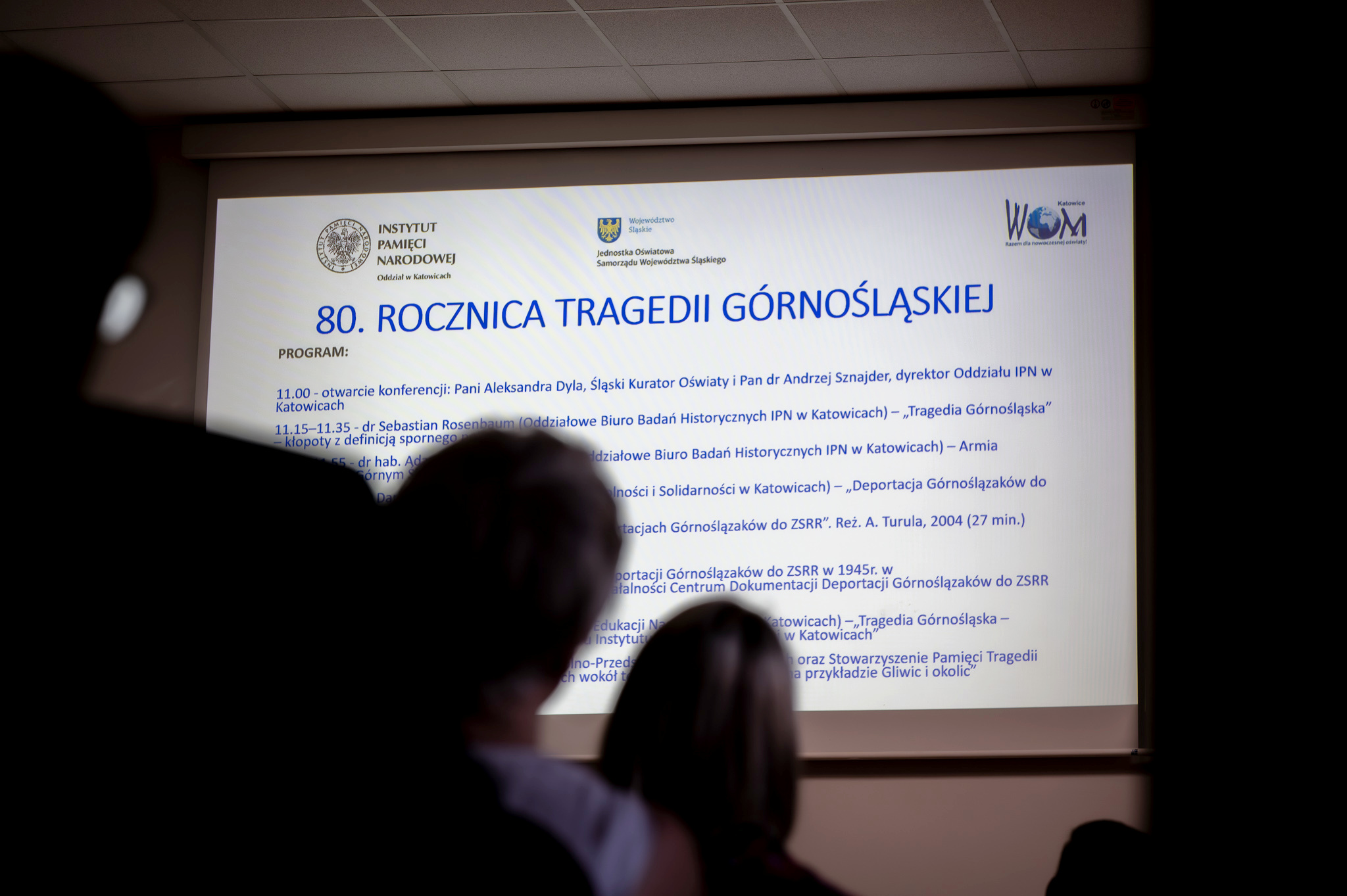 Dr Sebastian Rosenbaum z Oddziałowego Biura Badań Historycznych IPN w Katowicach przedstawił referat zatytułowany „Tragedia Górnośląska – kłopoty z definicją spornego pojęcia”. Dr hab. Adam Dziurok, profesor UKSW i naczelnik Oddziałowego Biura Badań Historycznych IPN w Katowicach, referował temat: „Armia Czerwona na Górnym Śląsku w 1945 r.”. Dr Dariusz Węgrzyn ze Śląskiego Centrum Wolności i Solidarności w Katowicach omówił deportację Górnoślązaków do ZSRS w 1945 roku, analizując przyczyny, przebieg i skalę tych tragicznych wydarzeń. W ramach konferencji uczestnicy obejrzeli film dokumentalny „Przemilczana tragedia. Rzecz o deportacjach Górnoślązaków do ZSRR” w reżyserii Adama Turuli, zrealizowany w 2004 roku. Justyna Konik z Centrum Dokumentacji Deportacji Górnoślązaków do ZSRR w 1945 r. w Radzionkowie omówiła temat Tragedii Górnośląskiej z perspektywy działalności Centrum, ukazując jego rolę w badaniu i popularyzacji tej tematyki. Dr Angelika Blinda z Oddziałowego Biura Edukacji Narodowej IPN w Katowicach przedstawiła materiały edukacyjne i popularno-naukowe związane z Tragedią Górnośląską, które są dostępne w ofercie oddziału IPN. Dr Elżbieta Borkowska, związana z Zespołem Szkolno-Przedszkolnym nr 13 w Gliwicach oraz Stowarzyszeniem Pamięci Tragedii Śląskiej 1945, przedstawiła jak społeczności lokalne integrują się wokół tematyki Tragedii Śląskiej na przykładzie Gliwic i okolic.