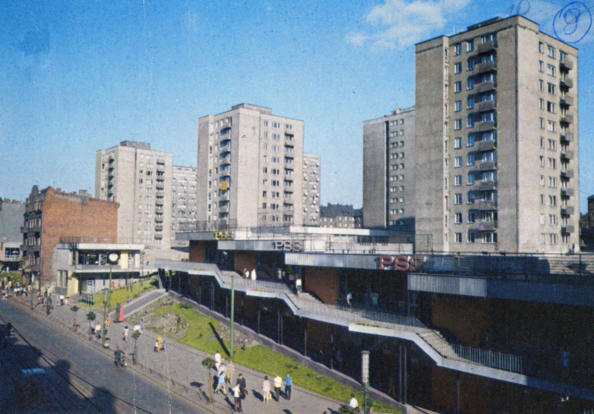 Katowice, ul. Armii Czerwonej (obecnie Aleja Wojciecha Korfantego), Superjednostka i ul. F. Dzierżyńskiego (obecnie Chorzowska; fot. J. Jastrzębski, A. Kaczkowski, A. Stelmach, wyd. Krajowa Agencja Wydawnicza; IPN Ka 462/565, t. 1) -