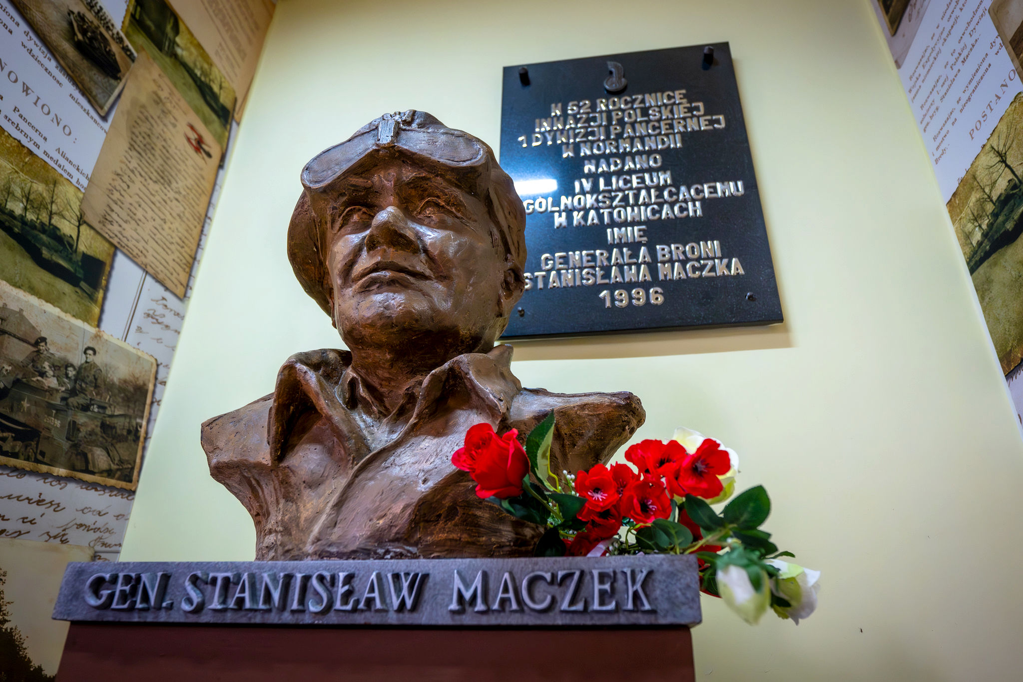 Po spotkaniu złożono wiązanki kwiatów pod popiersiem gen. Stanisława Maczka, które znajduje się w gmachu szkoły.