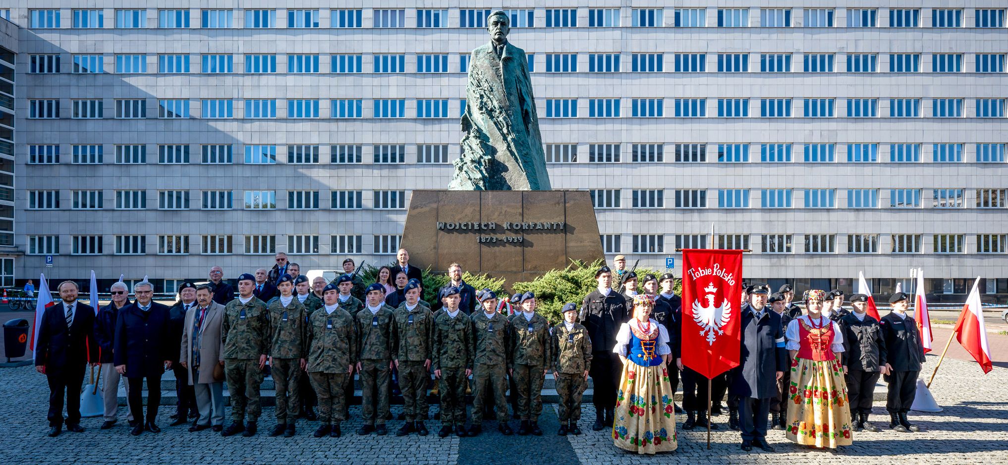 Po uroczystości przy ul. Francuskiej uczestnicy oraz delegacje społeczności szkolnych udali się pod pomnik Wojciecha Korfantego znajdujący się na pl. Sejmu Śląskiego, gdzie nastąpiła prezentacja ponad dwudziestu pocztów sztandarowych szkół noszących imię Wojciecha Korfantego, jak również powstańców oraz powstań śląskich z województw: śląskiego, dolnośląskiego i małopolskiego.