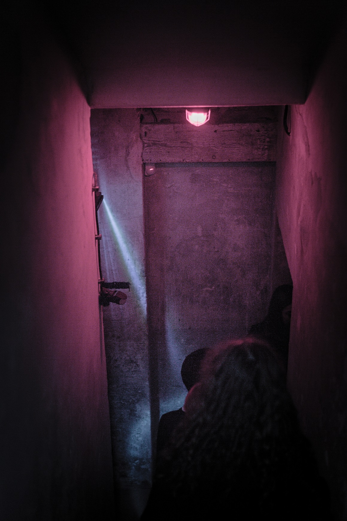 Naszym pierwszym celem jest Izba Pamięci IPN Strzelecka 8, dawna siedziba aresztu NKWD z niesławnym generałem Sierowem, a później jedna z placówek warszawskiej bezpieki. Dzielimy się na grupy i z marszu wchodzimy do piwnic. Wiecznie czujne oko strażnika – jaskrawoczerwonej lampy – ostro wyznacza granicę pomiędzy naszym, a tamtym światem sprzed niemal 80 lat. Jeszcze na drodze w głąb zapomnianych piekieł komunizmu, na wąskich stopniach podświetlonych na zmianę światłem dziennym i czerwienią, dostrzegam pajęczynę...