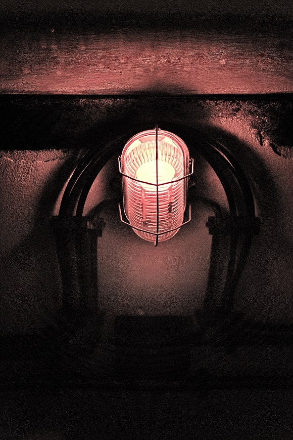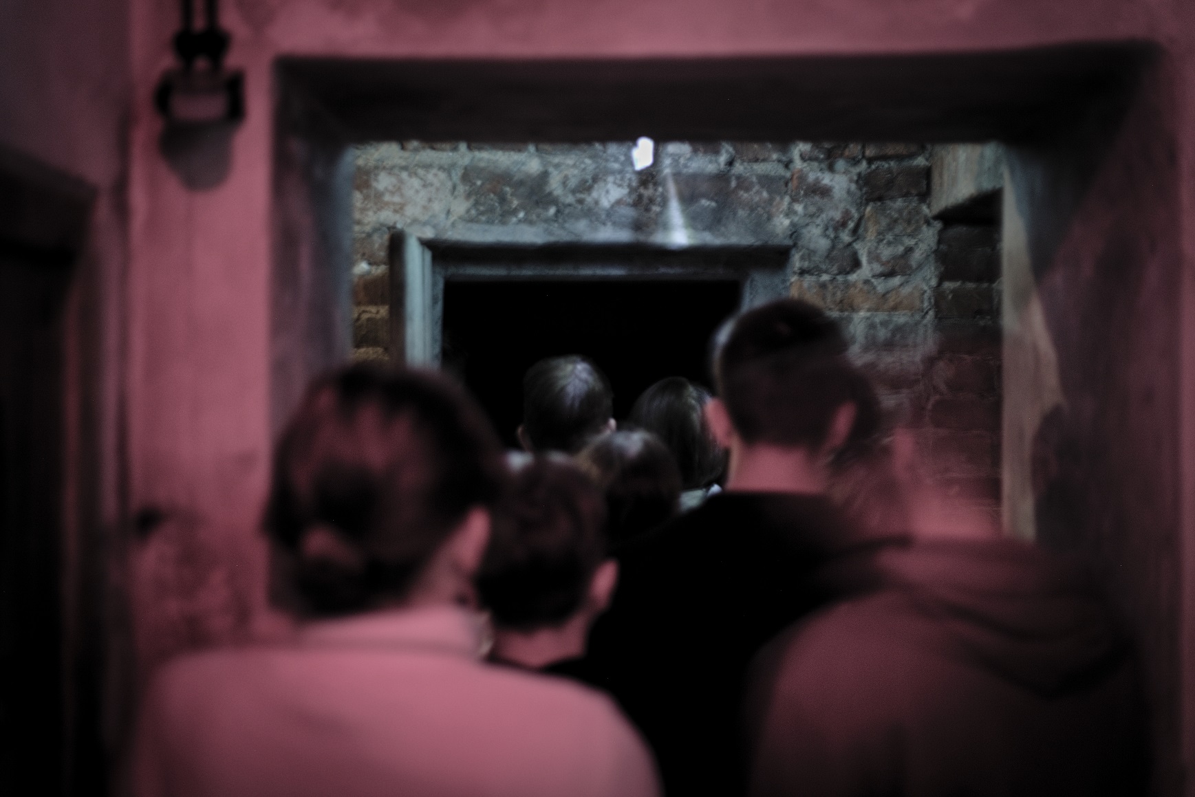 Schwytani w czerwone promienie, jak w nitki jego sieci, wchodzimy w duszne, ciasne przestrzenie wąskich korytarzy i malutkich piwniczek, które służyły ongi za wieloosobowe cele aresztu.