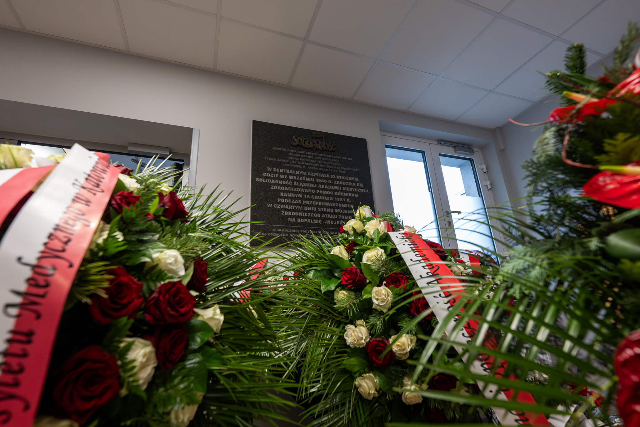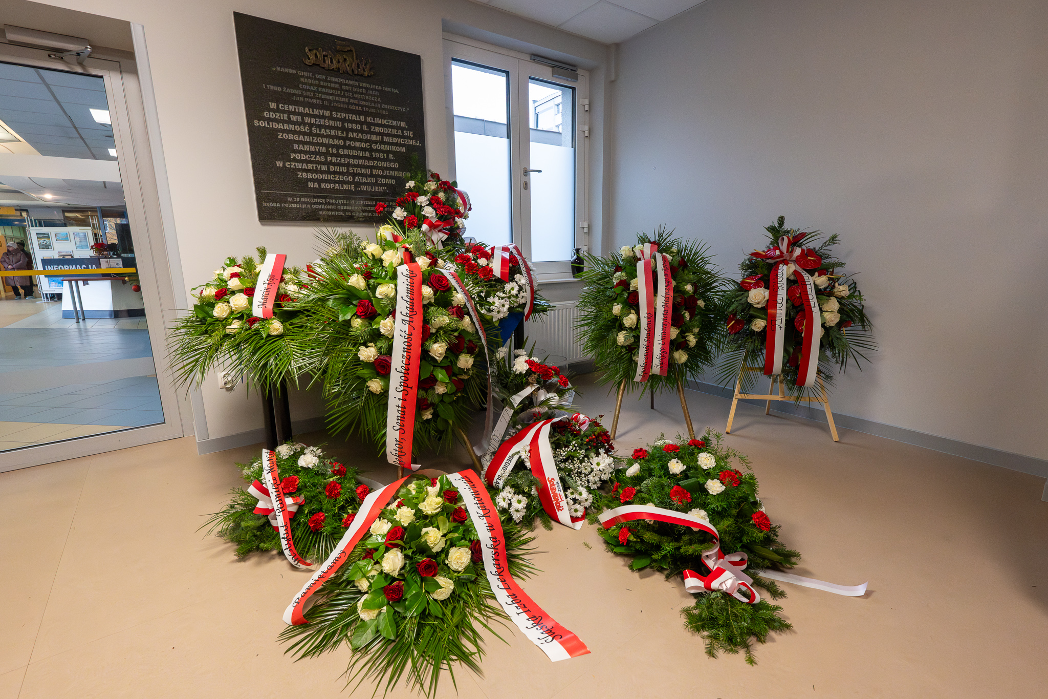 O godz. 11.30 dr Andrzej Sznajder, dyrektor Oddziału IPN w Katowicach złożył kwiaty pod tablicą upamiętniającą wspaniałą postawę pracowników służby zdrowia, którzy w dniu pacyfikacji KWK „Wujek” organizowali pomoc dla rannych górników.