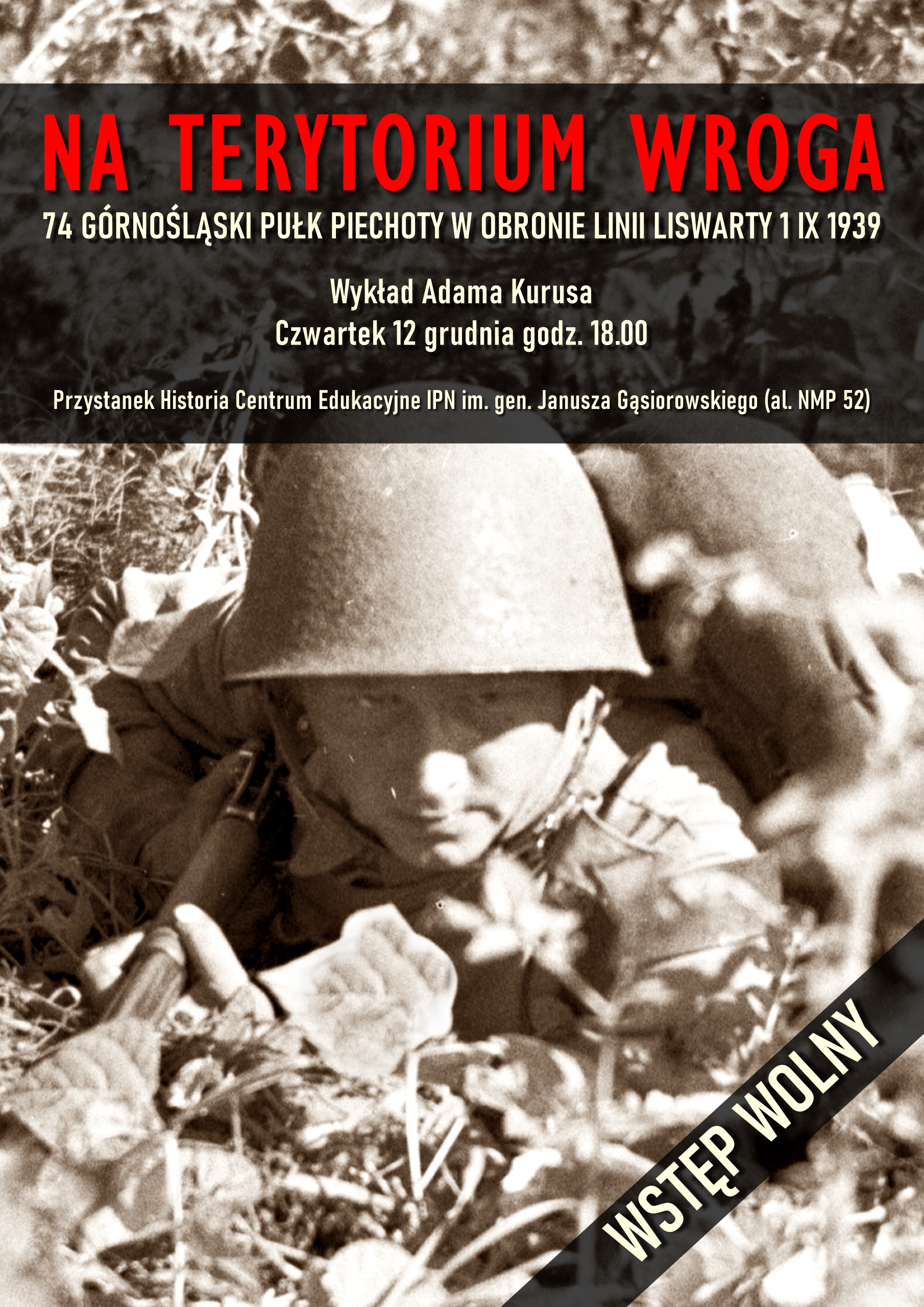 W czwartek 12 grudnia w Przystanku Historia Centrum Edukacyjnym IPN im. gen. Janusza Gąsiorowskiego w Częstochowie odbył się wykład Adama Kurusa, historyka OBEN IPN Katowice nt. „Na terytorium wroga. 74 Górnośląski Pułk Piechoty w obronie linii Liswarty 1 IX 1939“.