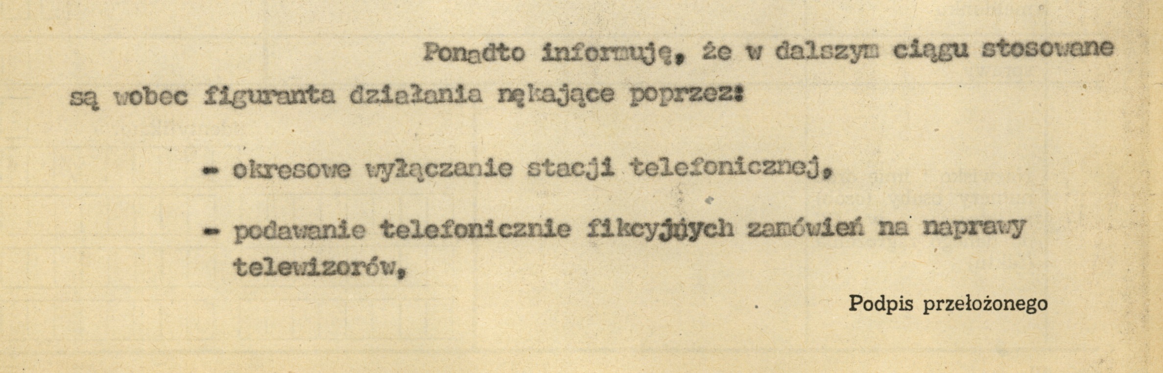 Informacja od TW „Roma” o wykonaniu polecenia wysłania zażalenia na rzekomo złą jakość usług świadczonych przez K. Świtonia (AIPN Ka 048/916, t. 5) -
