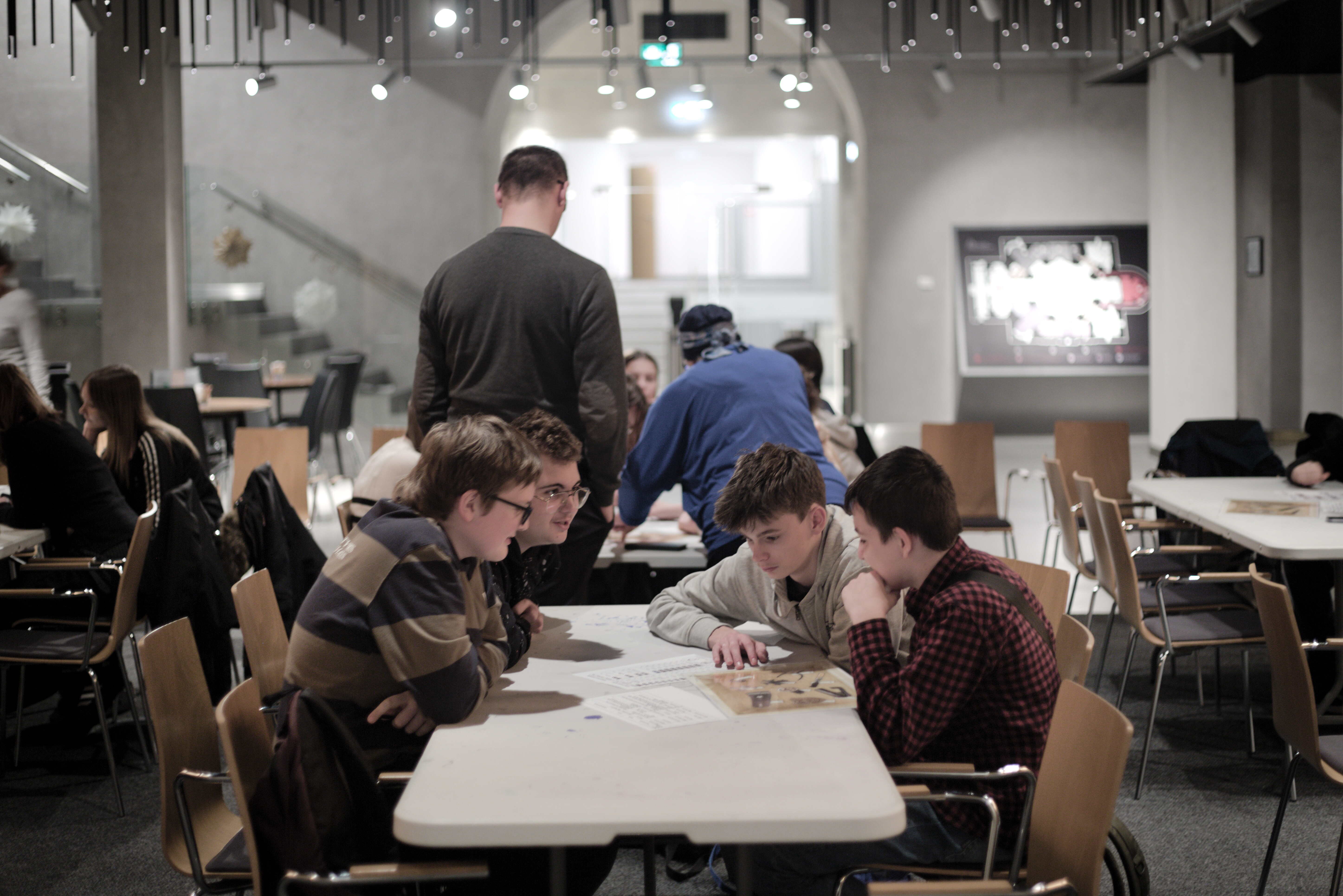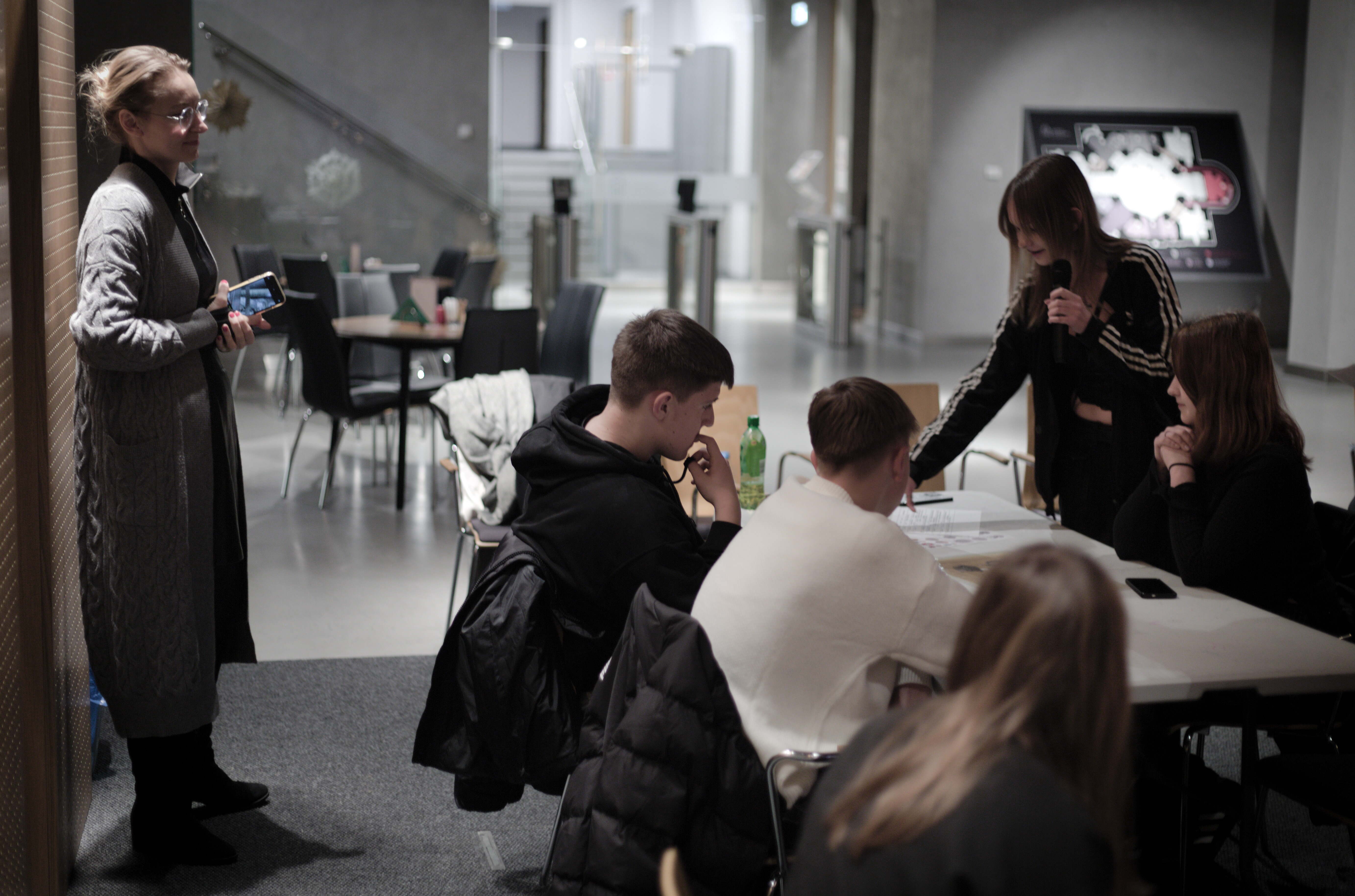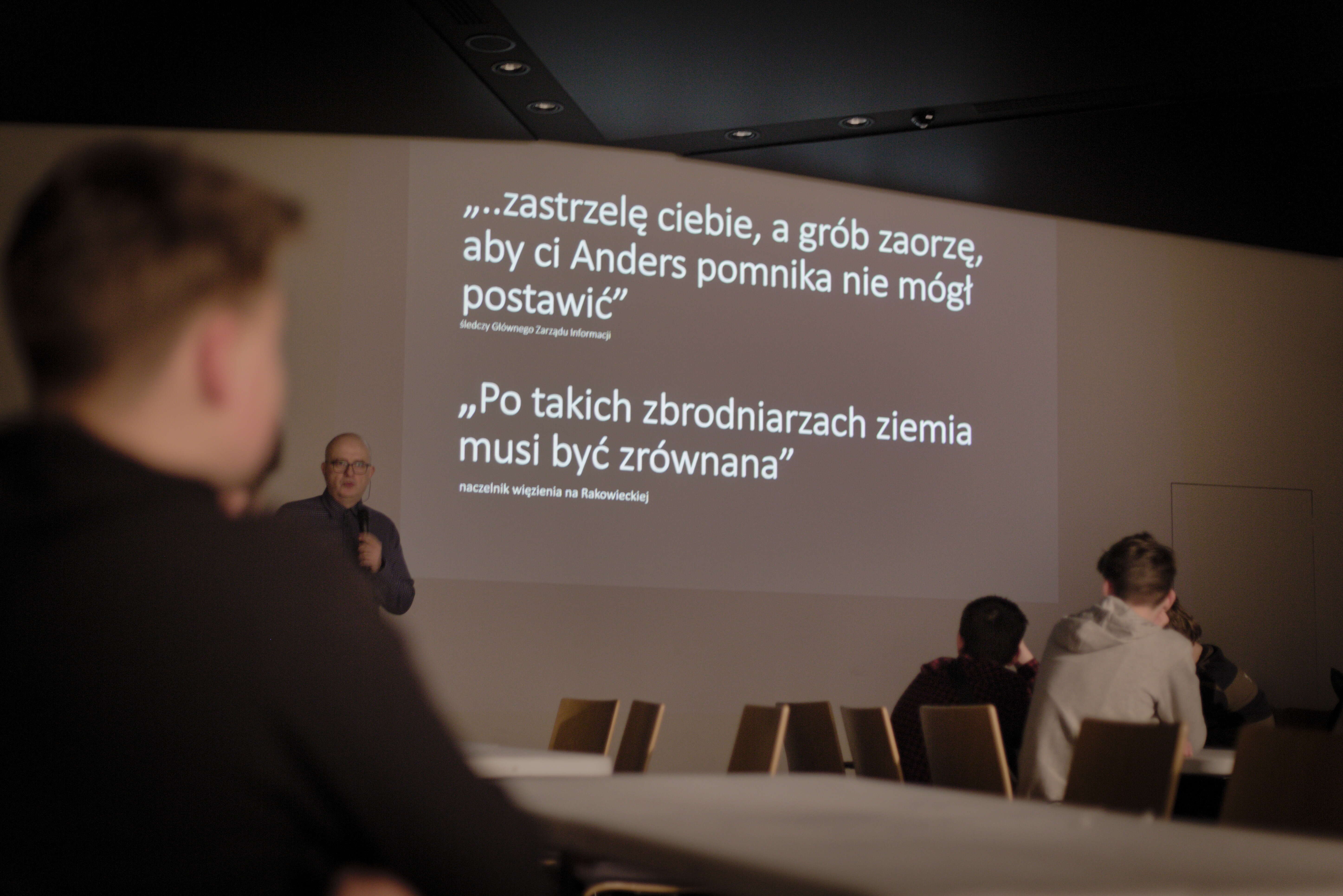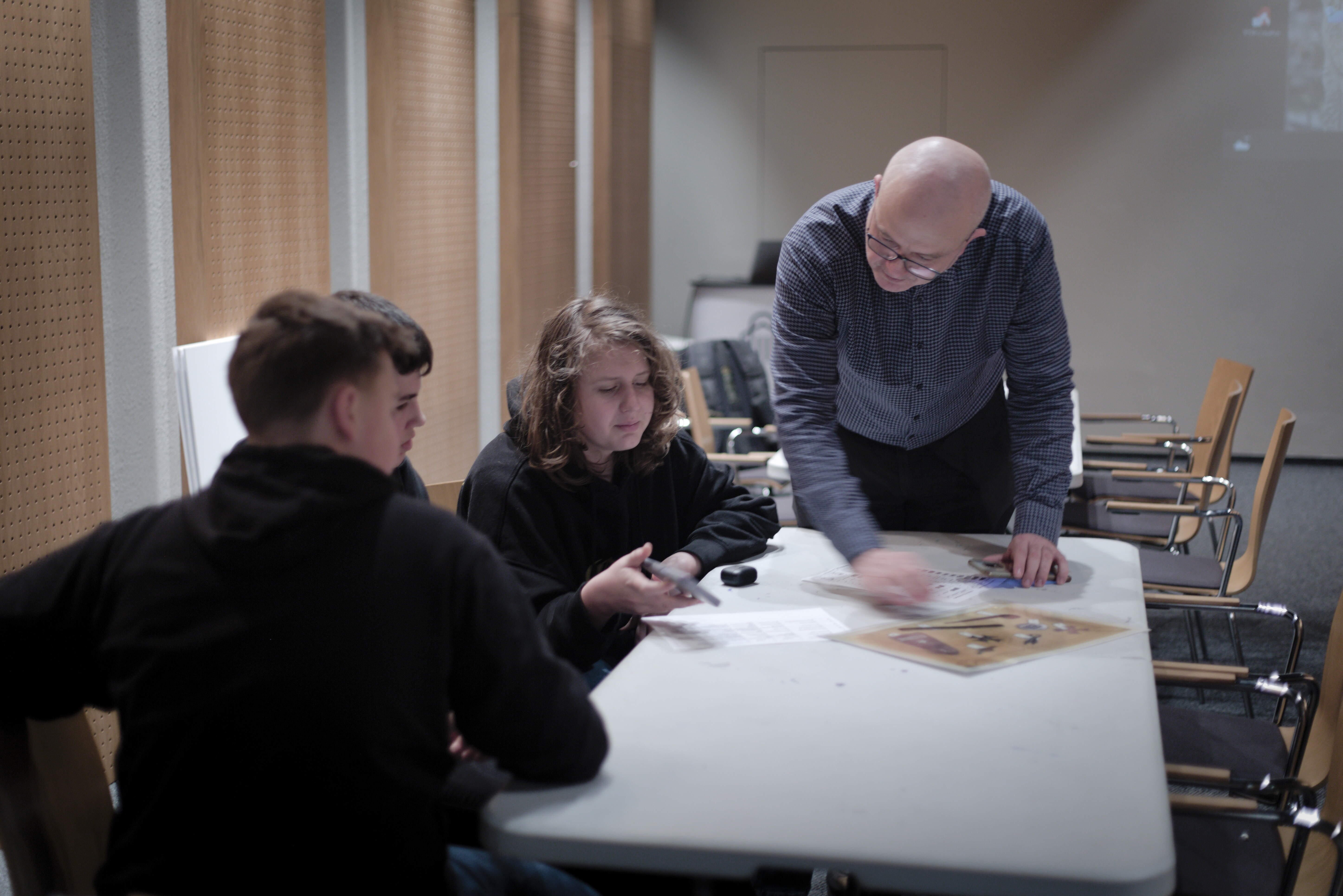 Po prelekcji odbyły się warsztaty w grupach. Młodzi uczestnicy podjęli próbę identyfikacji bohaterów odnalezionych w trakcie prac poszukiwawczych, mając do dyspozycji tylko artefakty znalezione w dołach śmierci. Artefakty, które w unikalny sposób opowiadają historię swojego posiadacza.