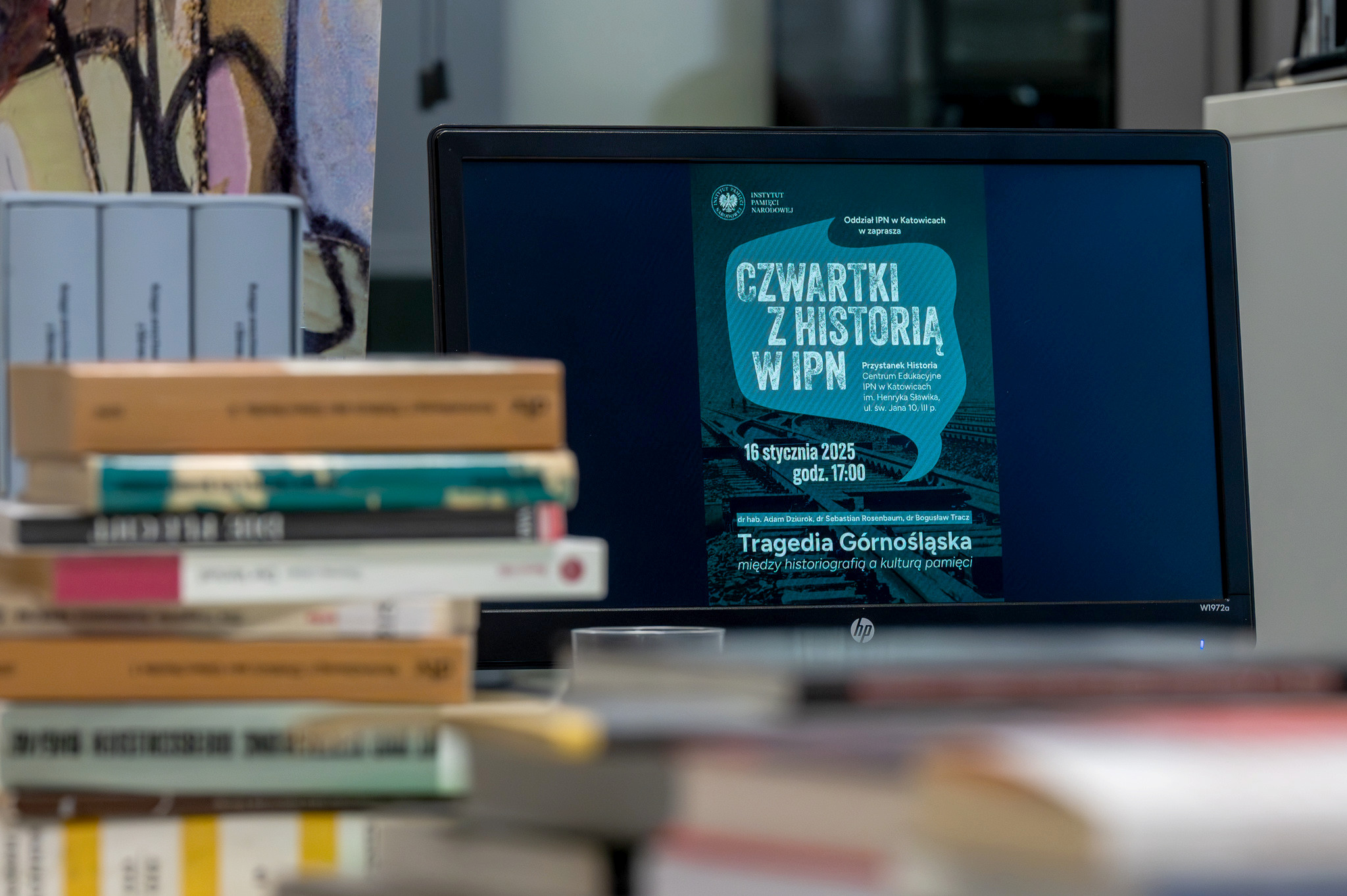 16 stycznia 2025 r. w Przystanku Historia Centrum Edukacyjnym IPN w Katowicach im. Henryka Sławika, przy ul. św. Jana 10 (III piętro) odbyło się kolejne spotkanie w ramach projektu „Czwartki z historią”. Wokół tematu „Tragedia Górnośląska - między historiografią a kulturą pamięci“ rozmawiali dr Sebastian Rosenbaum i dr Bogusław Tracz z Oddziałowego Biura Badań Historycznych IPN w Katowicach.
