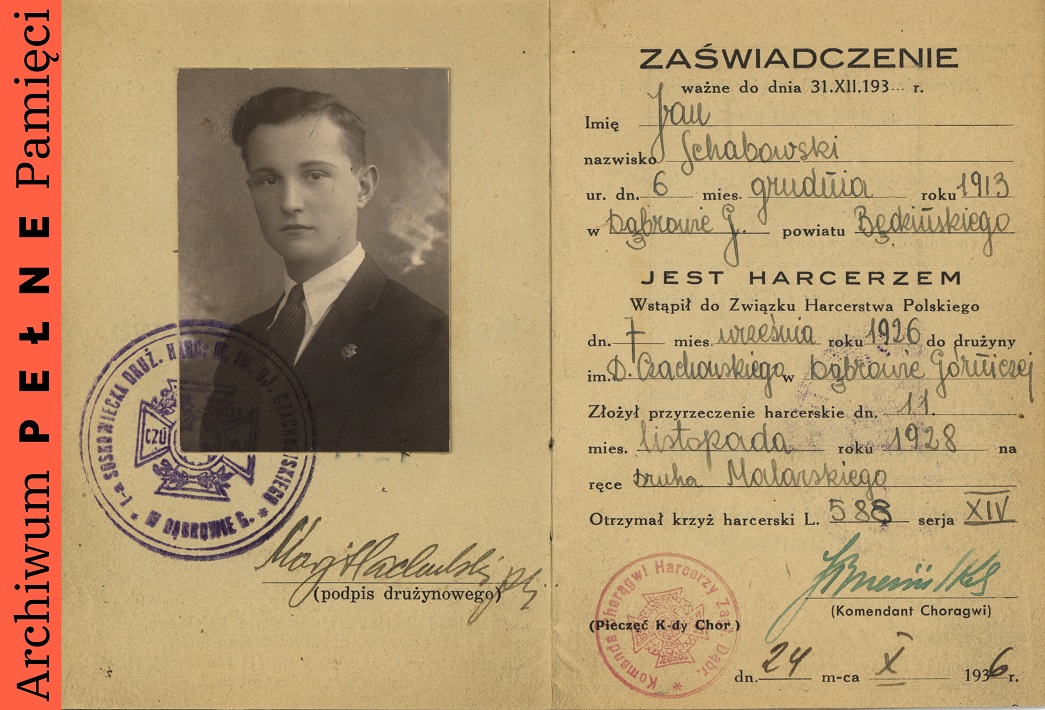 Oddziałowe Archiwum IPN w Katowicach pragnie zaprezentować Państwu ciekawy dar prywatny, przekazany przez  Annę Schabowską do zasobu katowickiego Oddziału IPN przed kilkoma miesiącami w ramach projektu „Archiwum Pełne Pamięci”. Dar ten zawiera liczne dokumenty, fotografie oraz kolekcję kart pocztowych dotyczące ojca Anny Schabowskiej – Jana Schabowskiego – harcerza, żołnierza konspiracji podczas II wojny światowej.