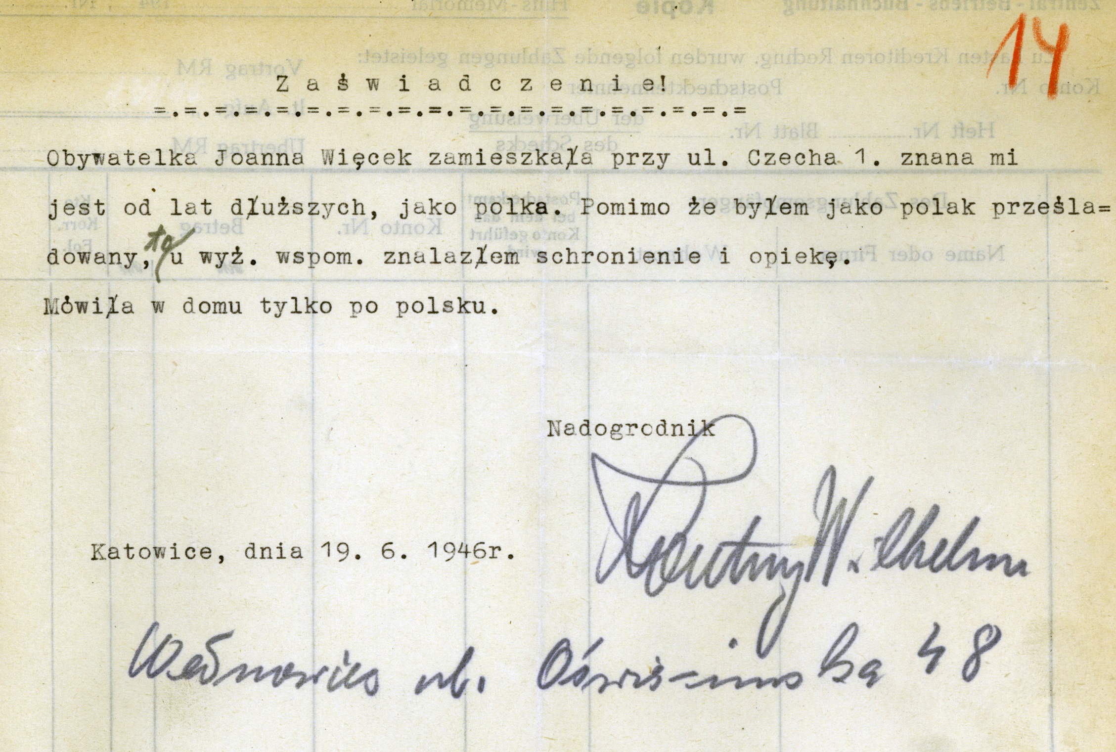 W rozpoczętym właśnie roku 2025 mija 80 lat od zakończenia II wojny światowej. „Wyzwolenie” Polski przez sowiecką armię poskutkowało popadnięciem naszego kraju w nową niewolę, ale wkroczenie tejże armii na Górny Śląsk stało się źródłem wielkiego cierpienia, zapamiętanego jako Tragedia Górnośląska. 9 stycznia tego roku Sejm RP podjął uchwałę w sprawie upamiętnienia 80 rocznicy Tragedii Górnośląskiej, a i „Migawka archiwalna” chce się przyczynić do utrwalenia świadectw losów mieszkańców tej ziemi w czasie przełomu między wojną a pokojem.