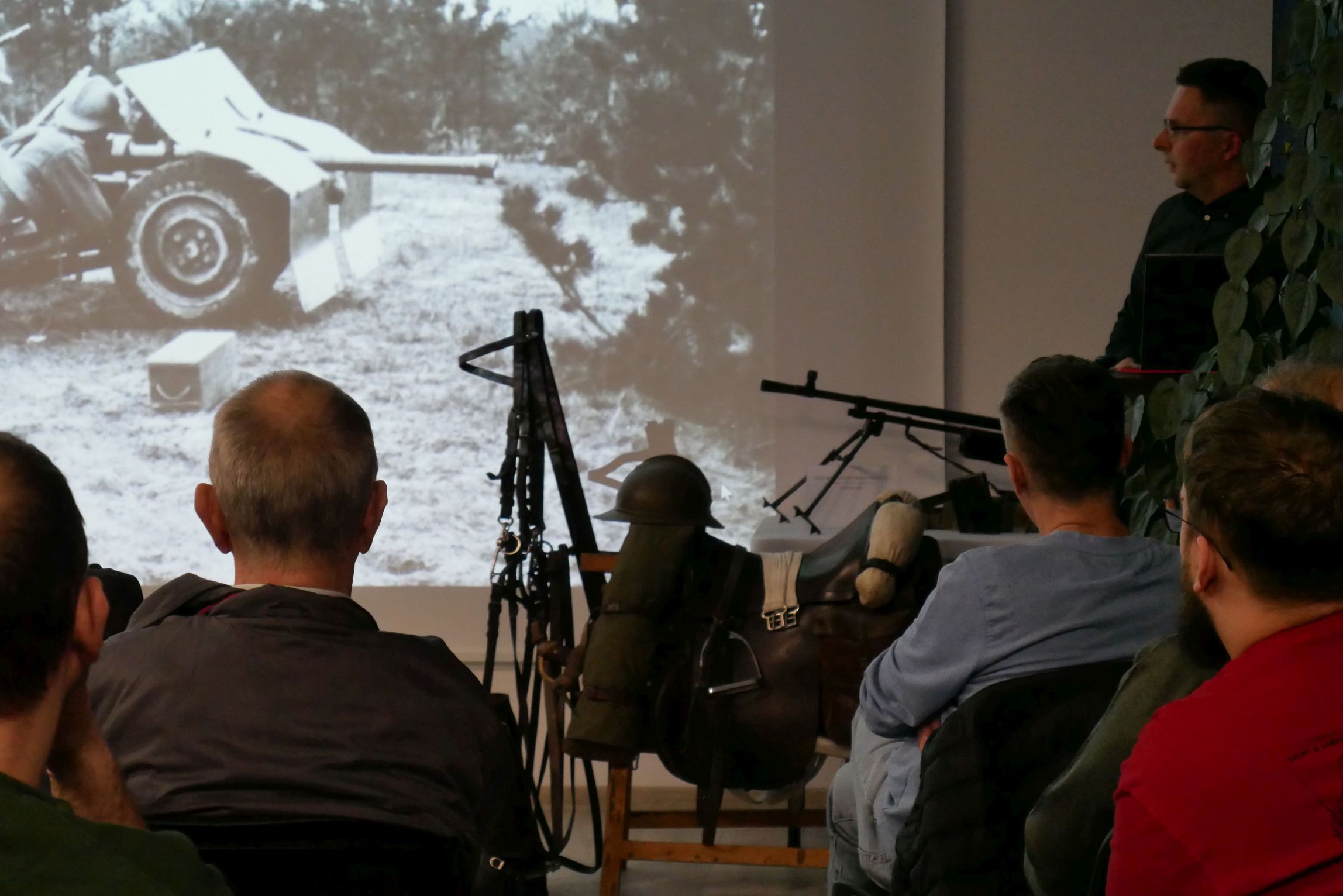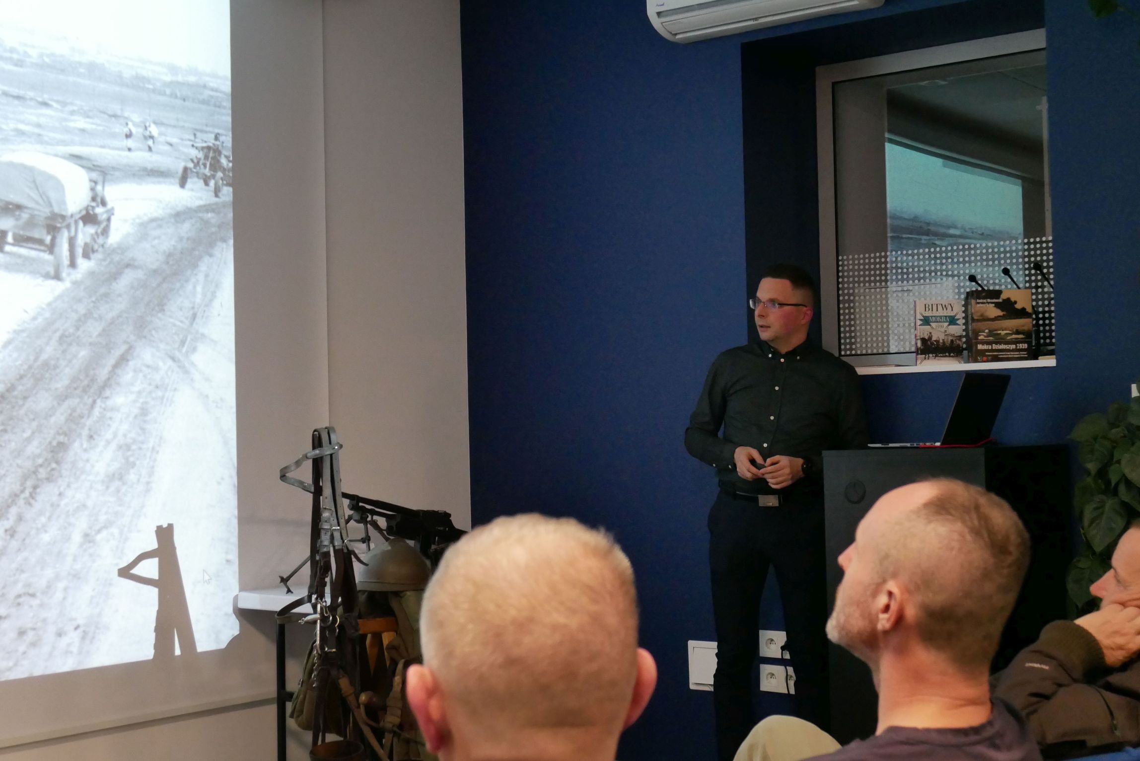 Wykład Adama Kurusa „Mokra 1939. Bój Wołyńskiej Brygady Kawalerii z 4 Dywizją Pancerną w świetle nowych fotografii i dokumentów archiwalnych”. Fot. Kinga Lis, Adam Kurus/IPN -