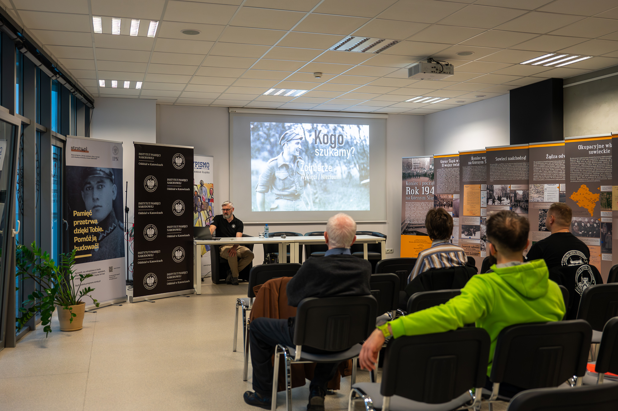 20 marca 2025 r. w Przystanku Historia Centrum Edukacyjnym IPN w Katowicach im. Henryka Sławika, przy ul. św. Jana 10 (III piętro) odbyło się kolejne spotkanie w ramach projektu „Czwartki z historią”. Naszym gościem był Adam Kondracki, pracownik Biura Poszukiwań i Identyfikacji Instytutu Pamięci Narodowej w Katowicach. Temat spotkania: „Poszukiwania Żołnierzy Wyklętych”.