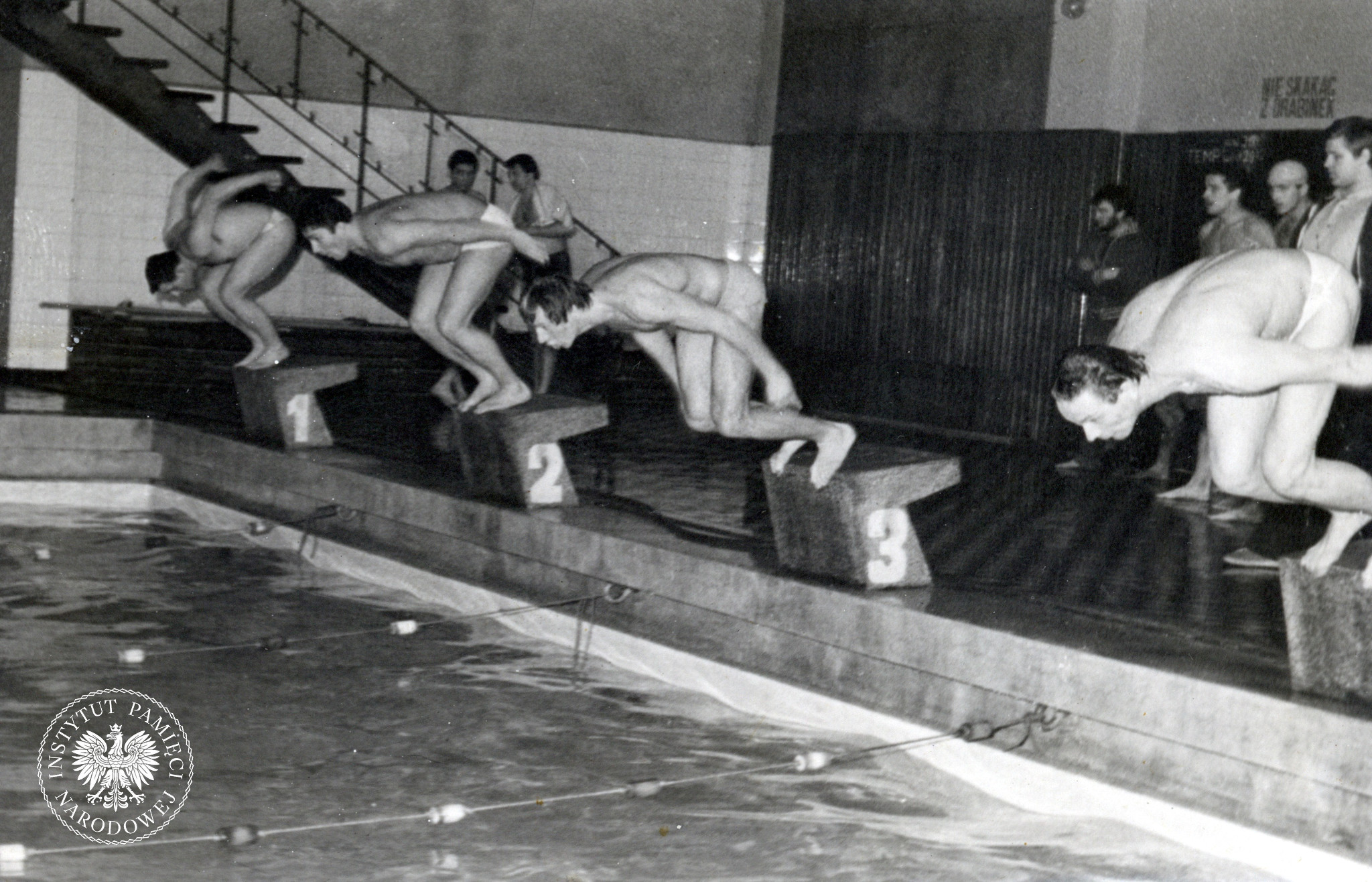 Mistrzostwa pływackie zorganizowane przez Zarząd Zakładowy ZSMP przy ZOMO w Katowicach, maj 1983 r. (IPN Ka 425/116) -