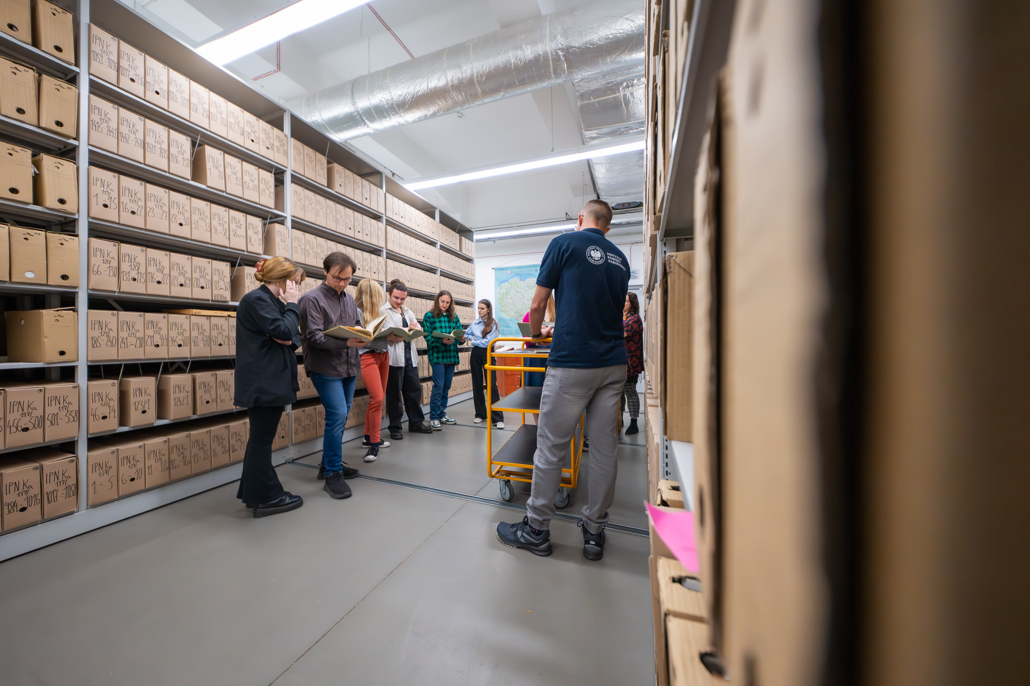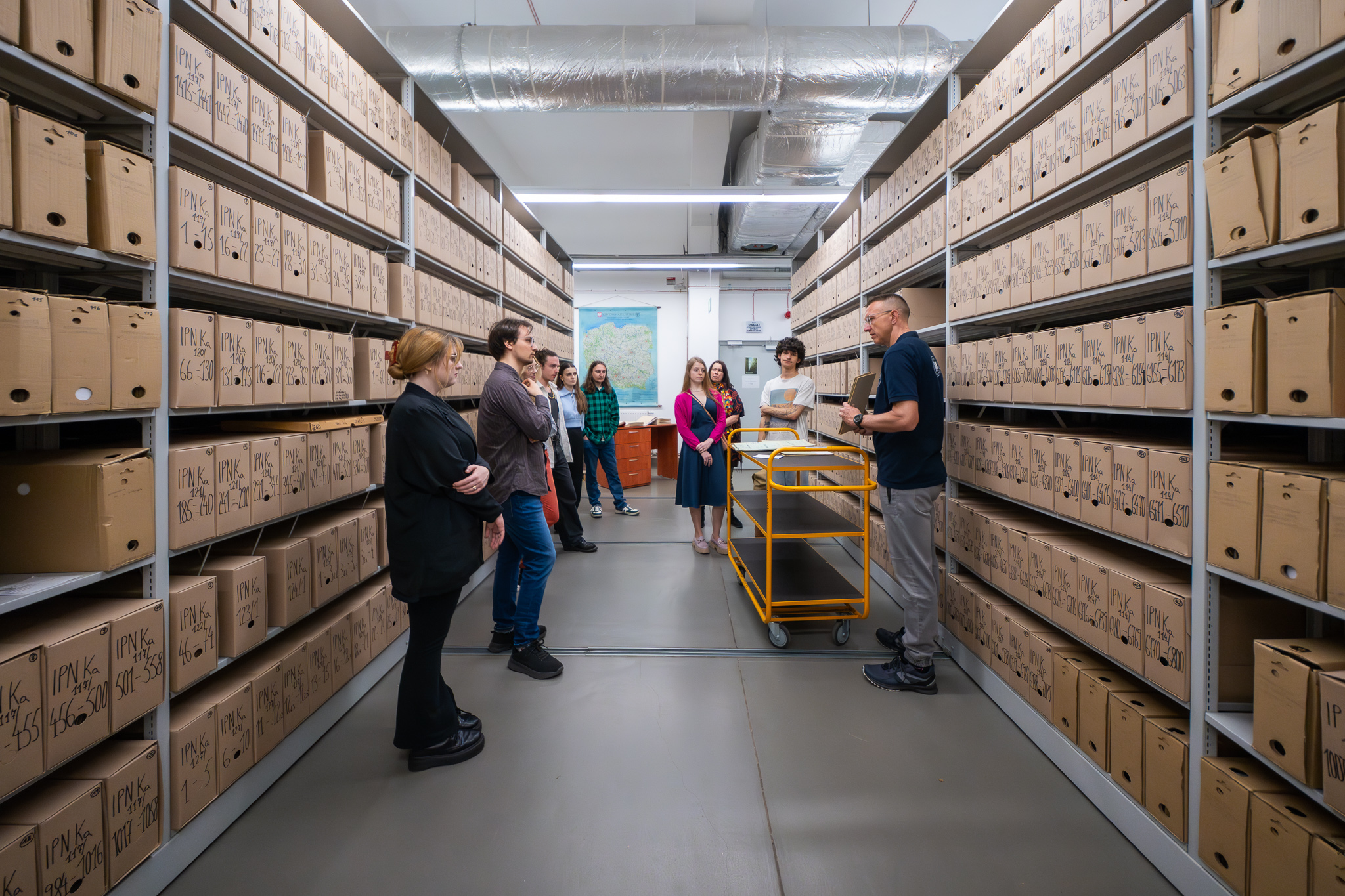 Uczestnikami byli studenci studiów II stopnia Uniwersytetu Śląskiego w Katowicach na kierunku kulturoznawstwo. W pierwszej części zajęć Mikołaj Wolski starszy archiwista z Oddziałowego Archiwum zapoznał uczestników z zasadami udostępniania akt w czytelni. Następnie kustosz Tomasz Marszałek z Oddziałowego Archiwum poprowadził zwiedzanie magazynu akt jawnych oraz zaprezentował przykładowe dokumenty z zasobu archiwalnego. W ostatniej części Renata Skoczek z Oddziałowego Biura Edukacji Narodowej omówiła krótko strukturę i działalność
